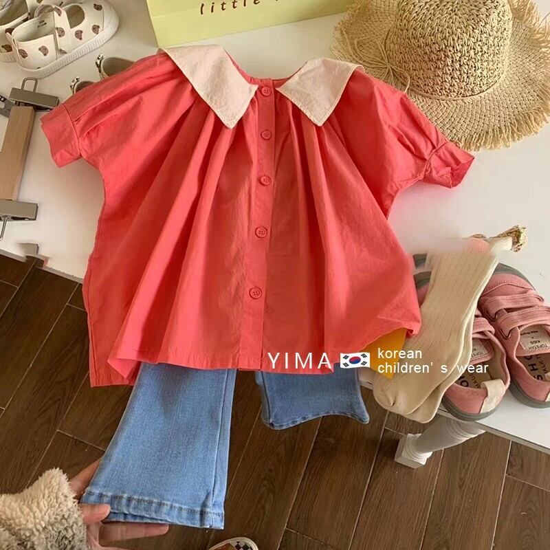 色:赤いシャツ,ブルージーンズ