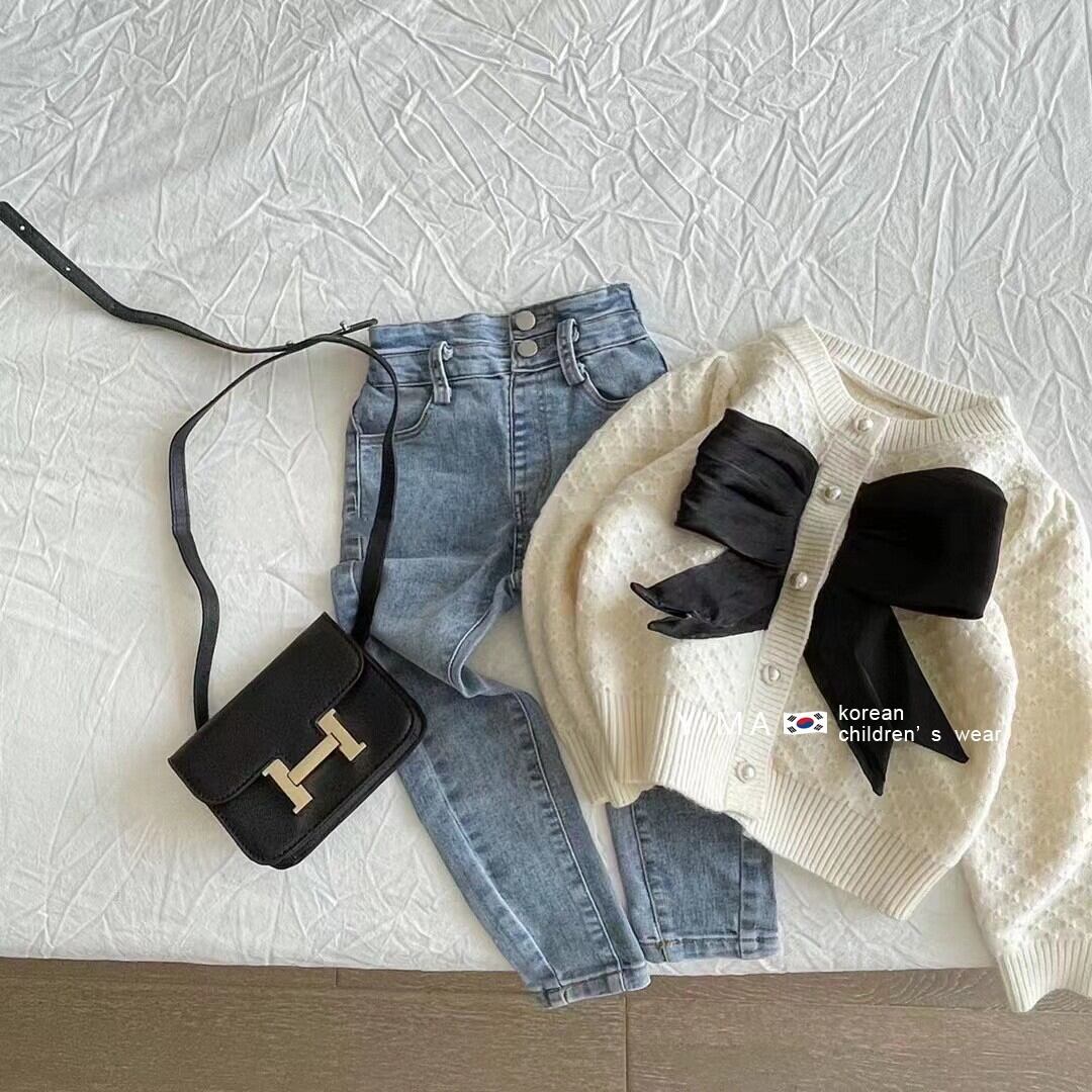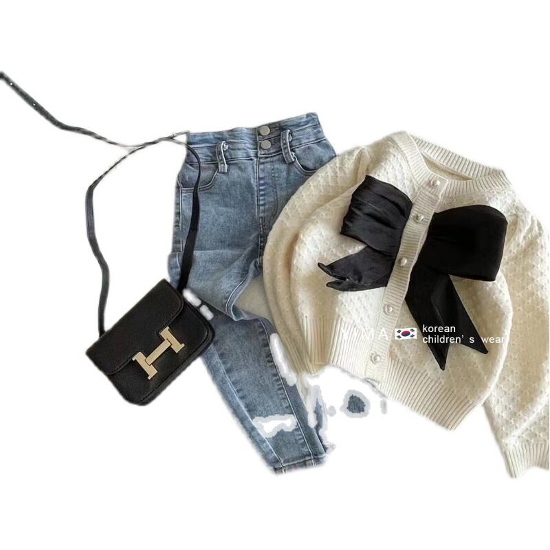 色:ホワイトニットカーディガン,ブラックニットカーディガン,ブルージーンズ,スモーキージーンズ
