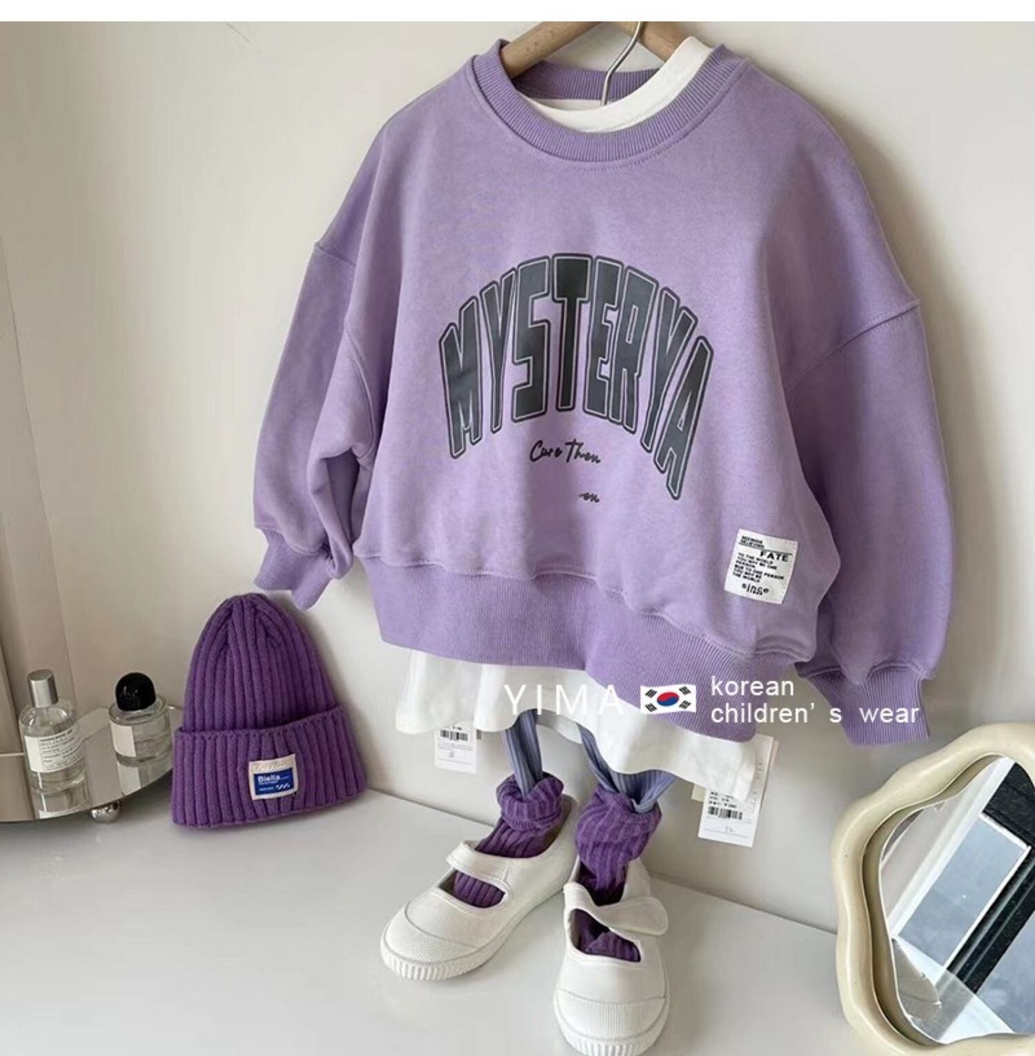 色:紫のセーター