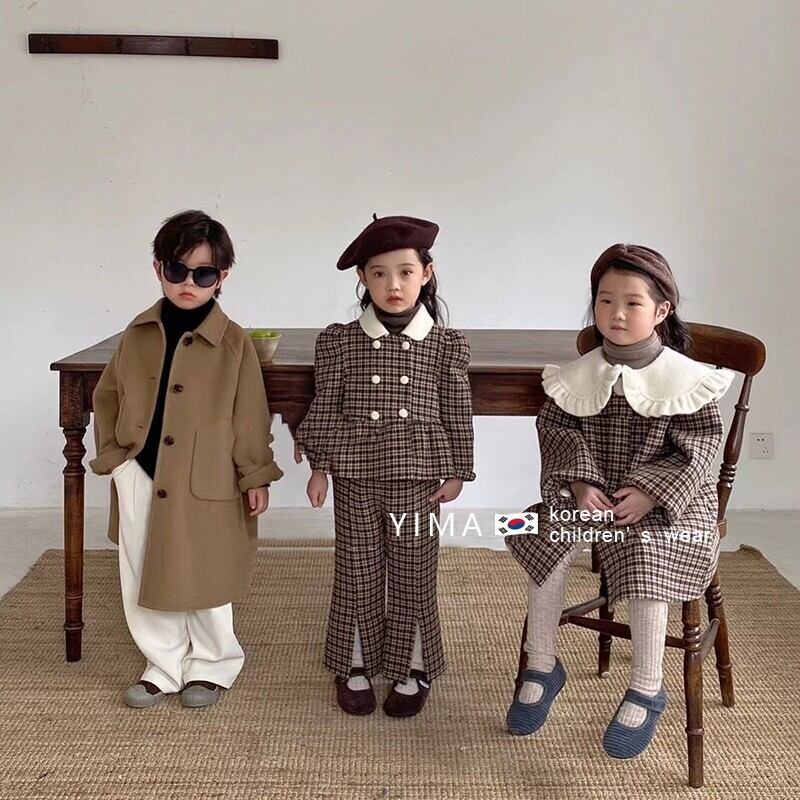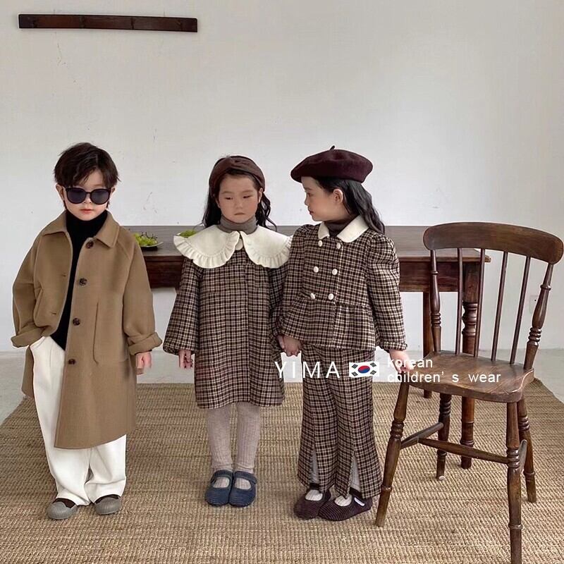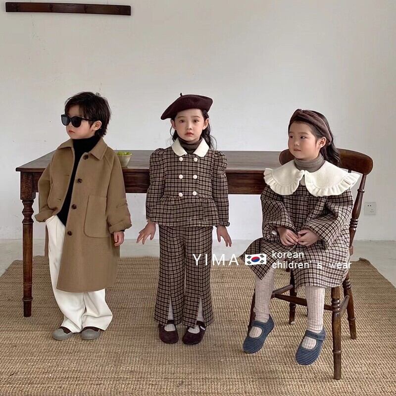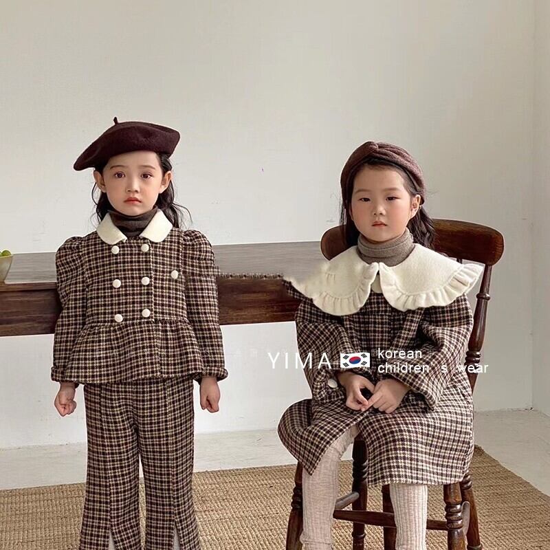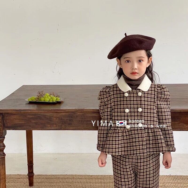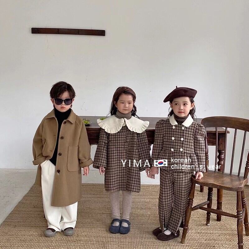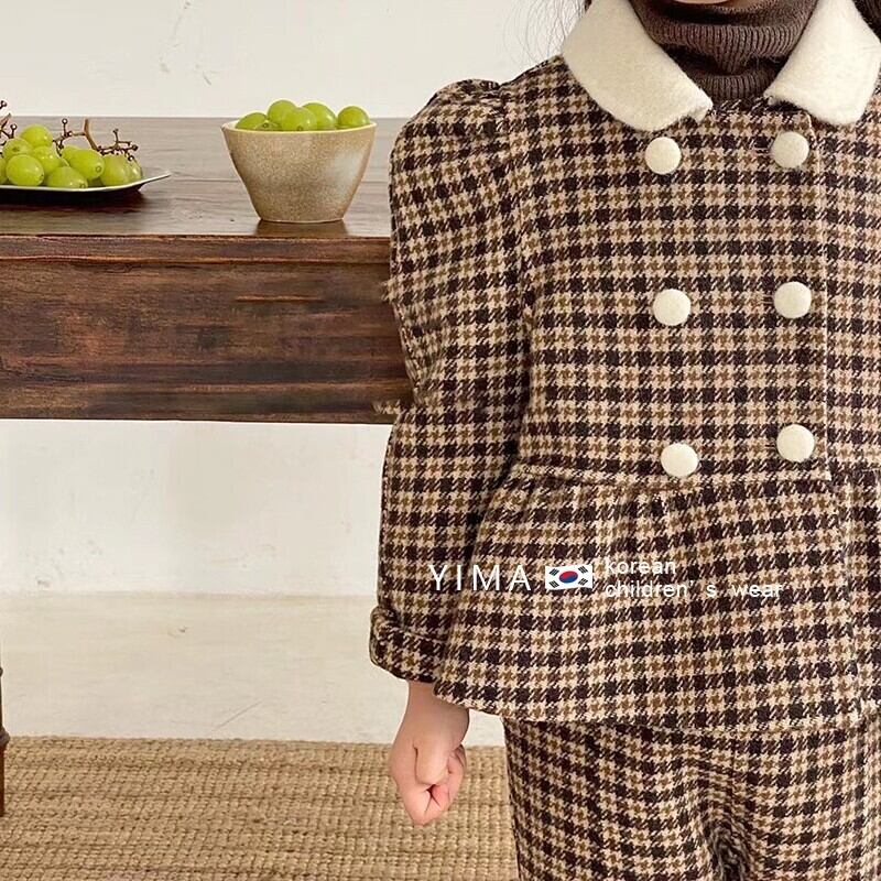 色:ブラウンチェック柄トップ+パンツ