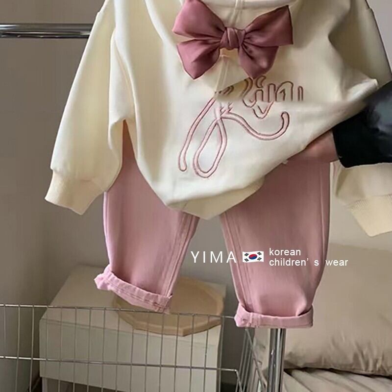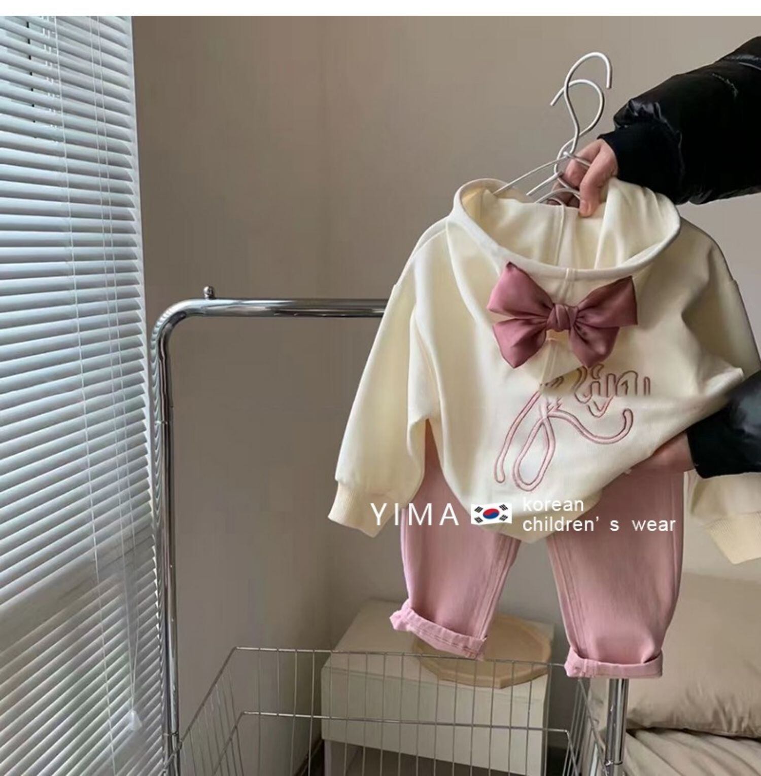 色:アプリコットフード付きスウェットシャツ,ピンクのパンツ
