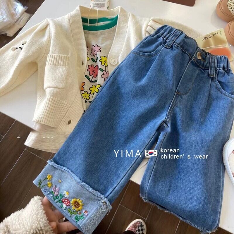 スプリングジーンズ Flowerデザイン パンツ レッド 刺繍 春物 フラワーデザイン 3/14 春夏 SS mi0976055362059 | Sagittarius By Constellation -KIDS&BABY-