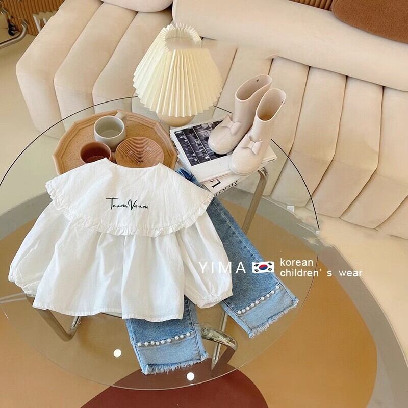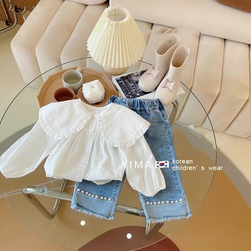 色:真っ白なシャツ,ブルーパールジーンズ