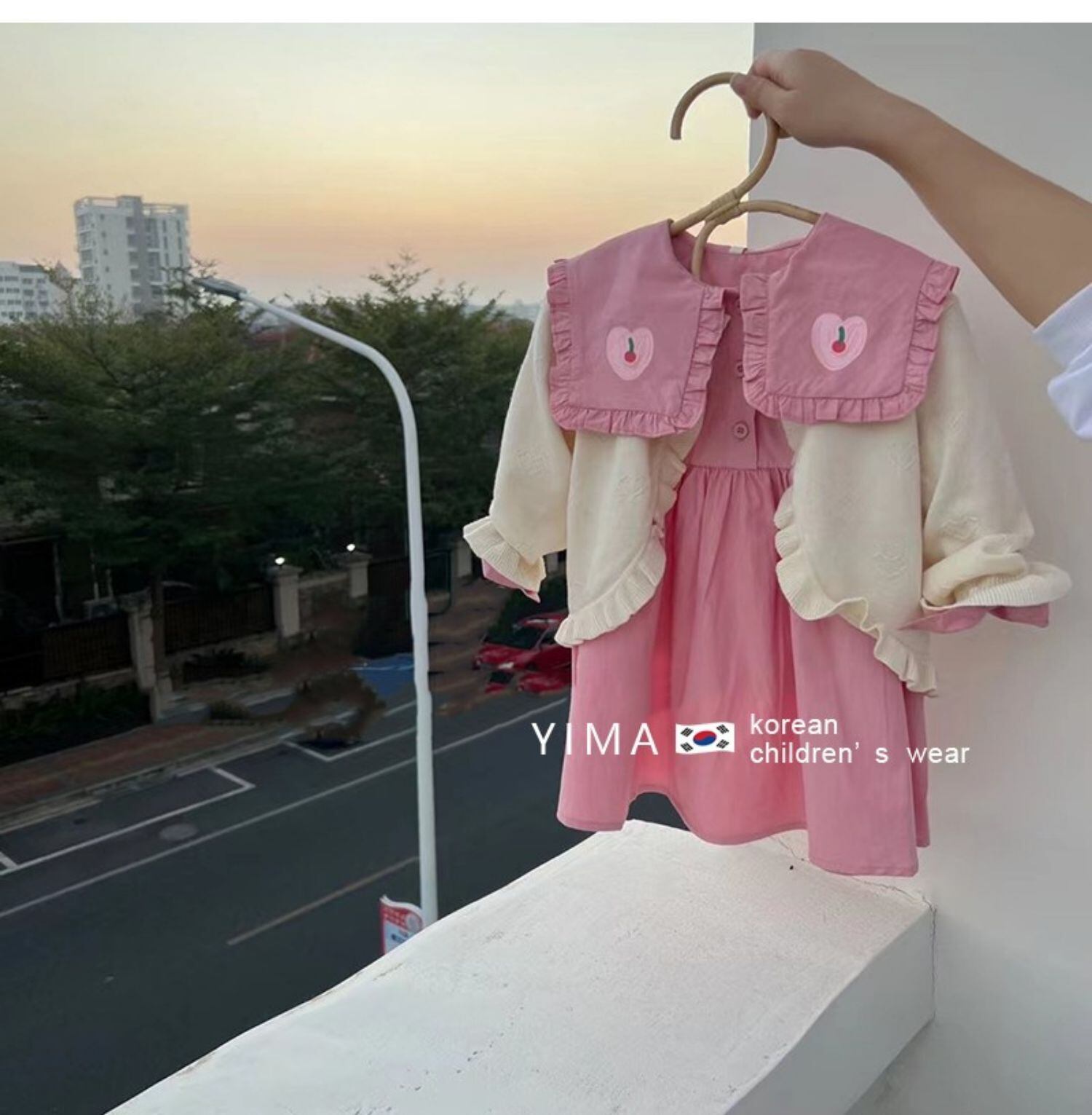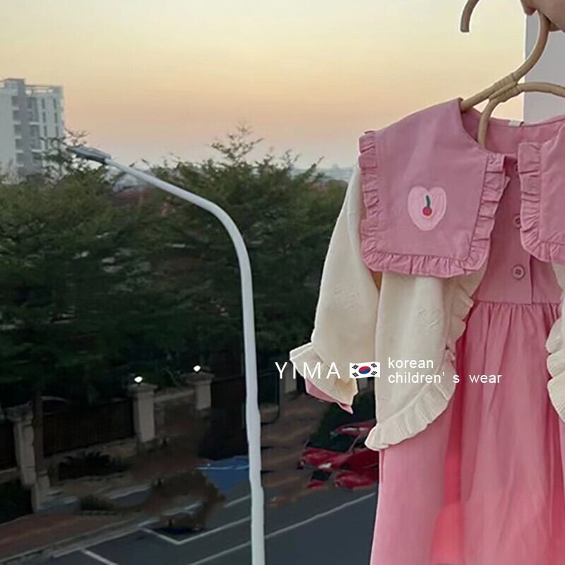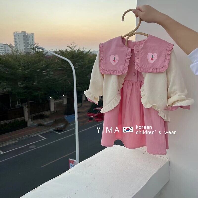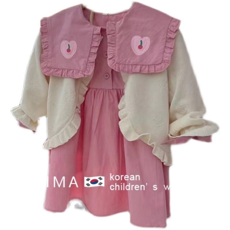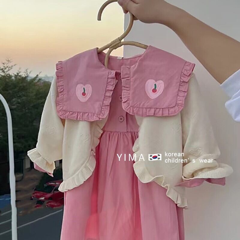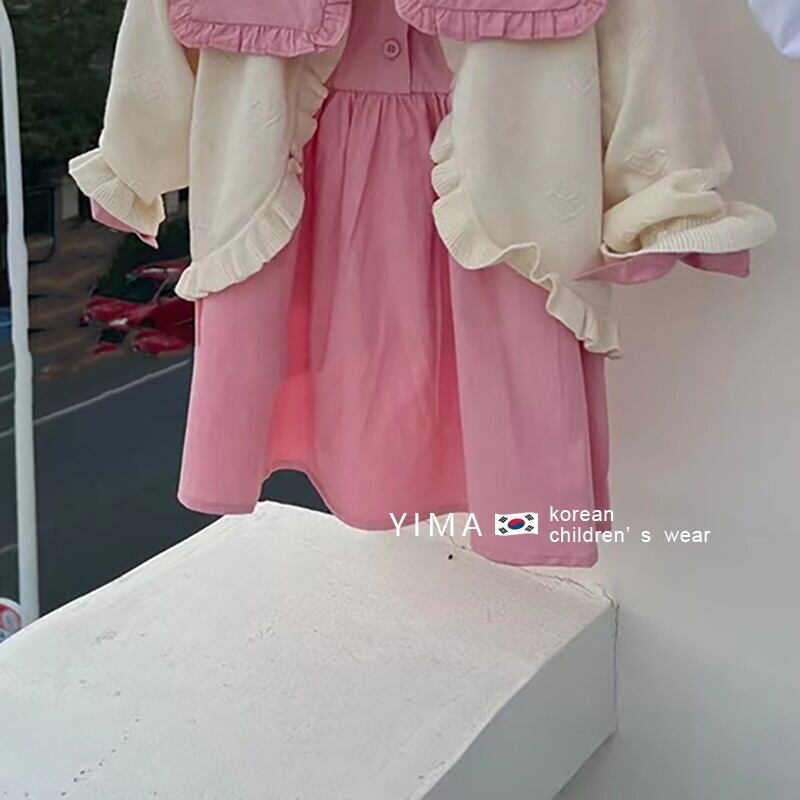 色:ピンクのドレス,アプリコットカーディガン