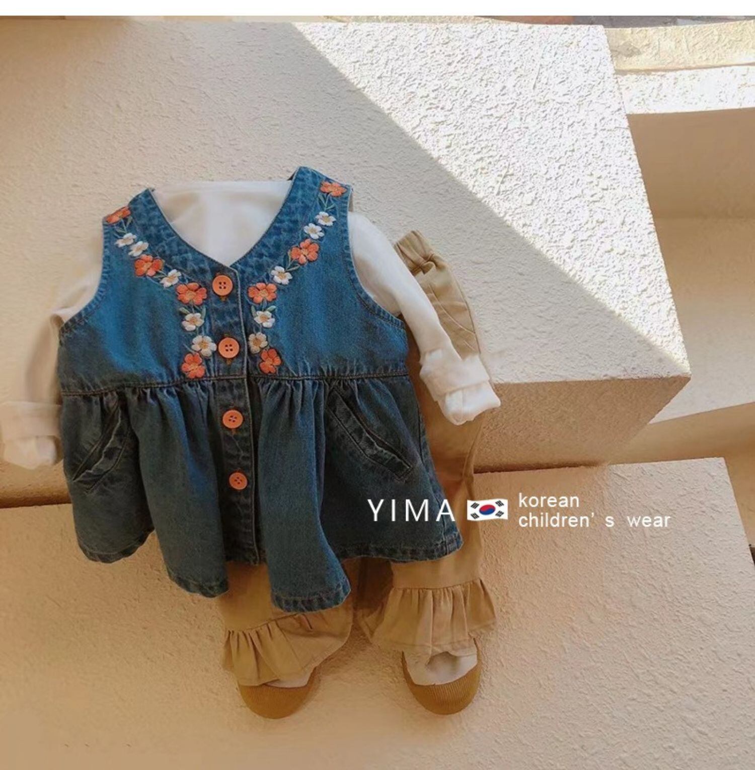 色:ブルーデニムスカート,ホワイトボトミングシャツ