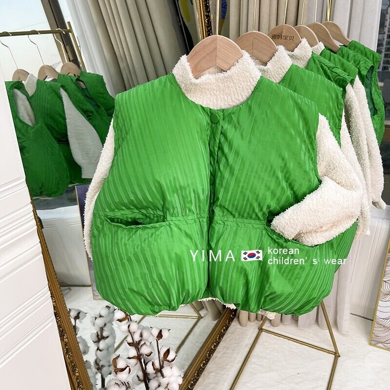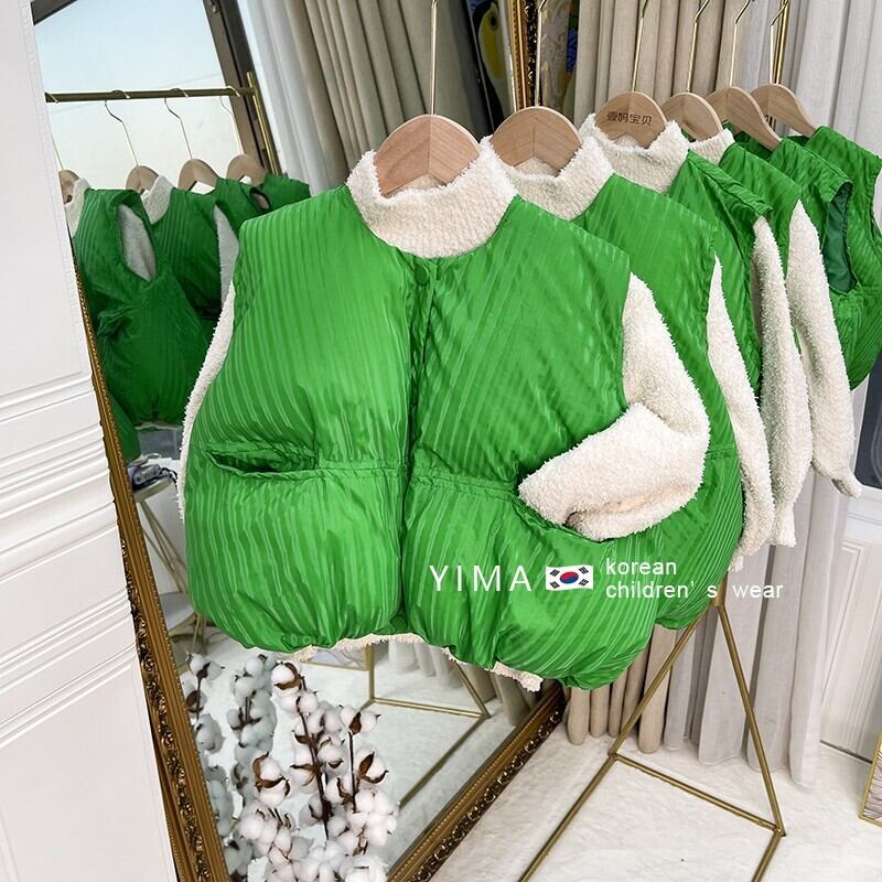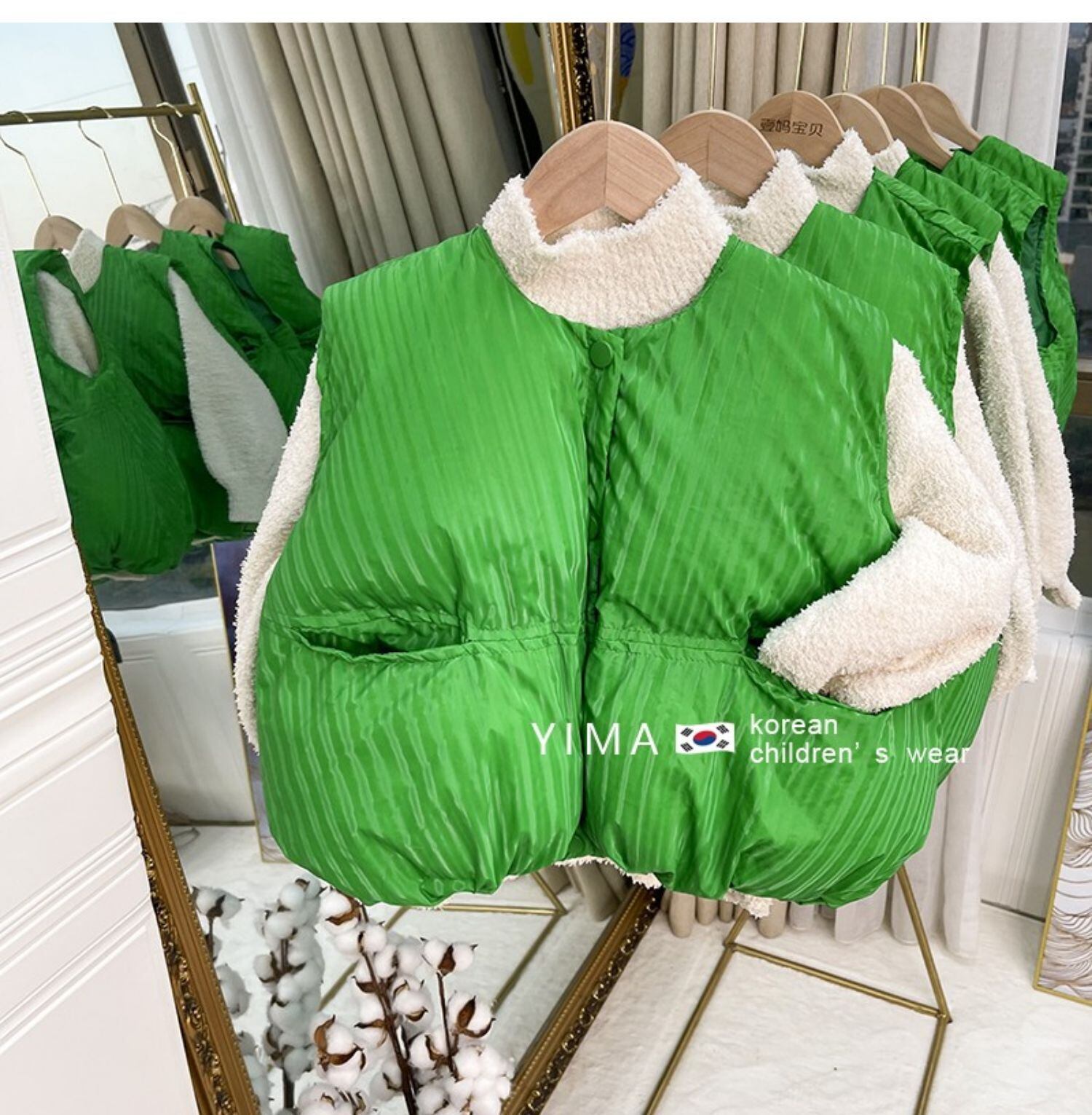 色:グリーンベスト,ベージュのセーター