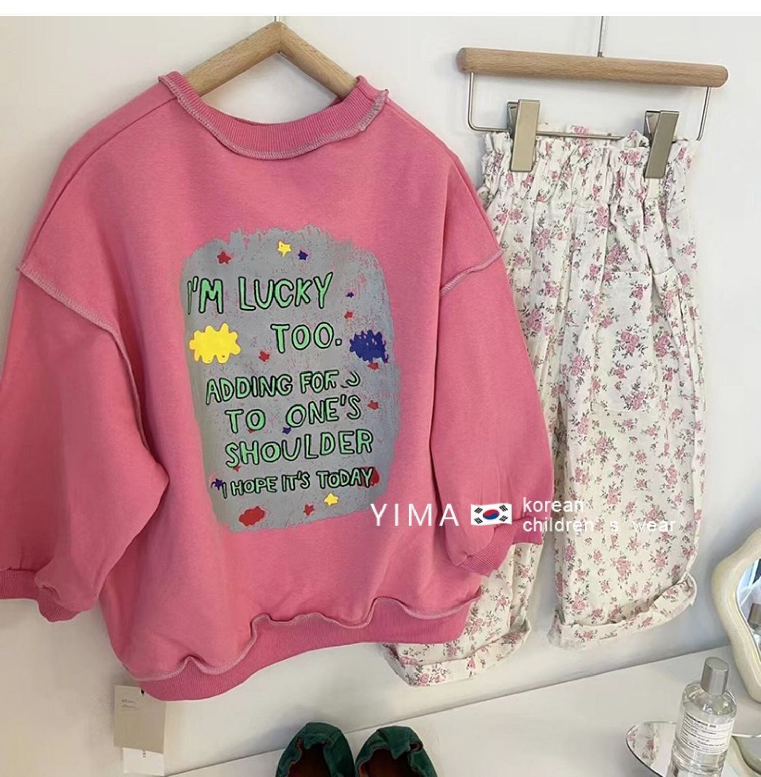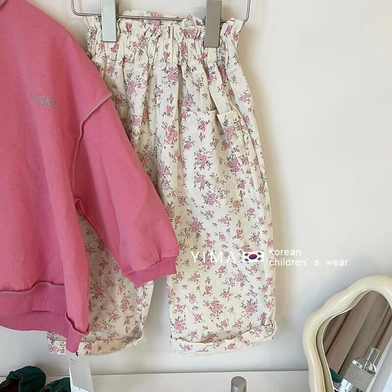 色:ピンクのセーター,ピンクフローラルパンツ