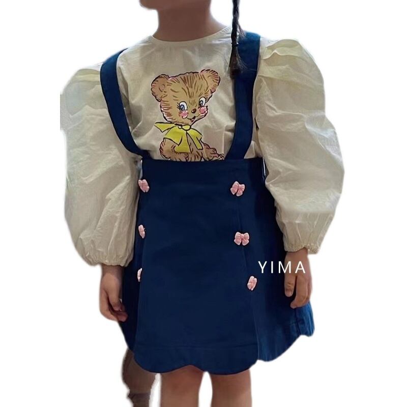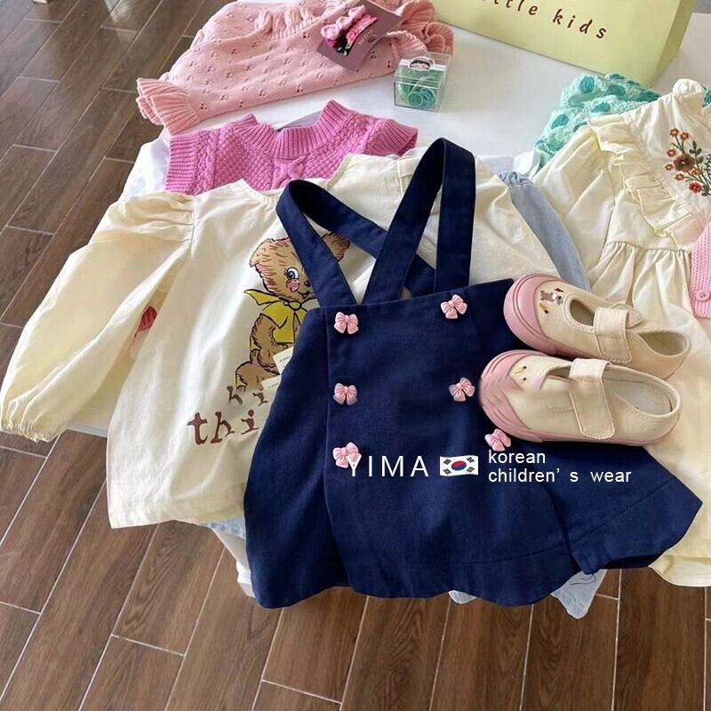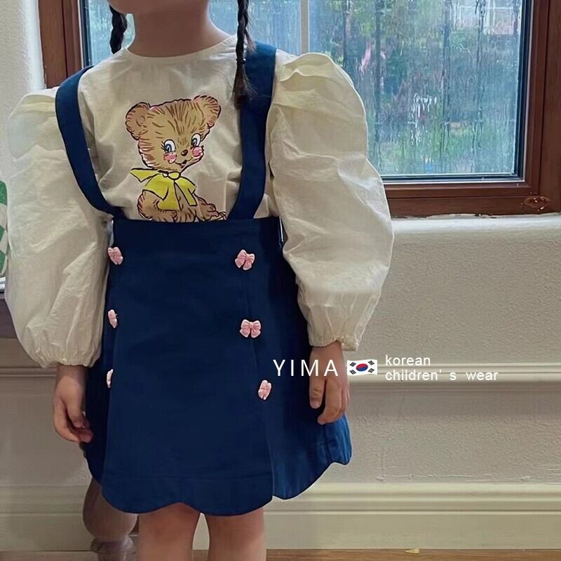 色:ブルーストラップスカート,ベージュベアトップ,白長袖シャツ