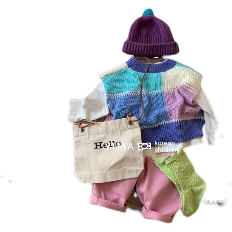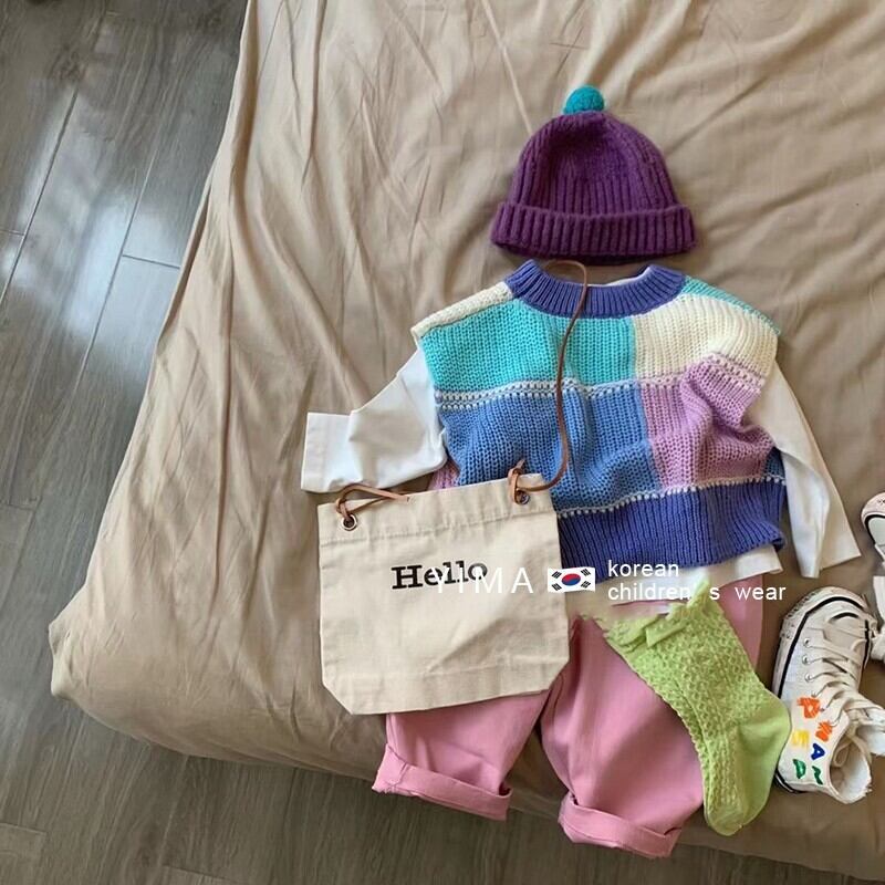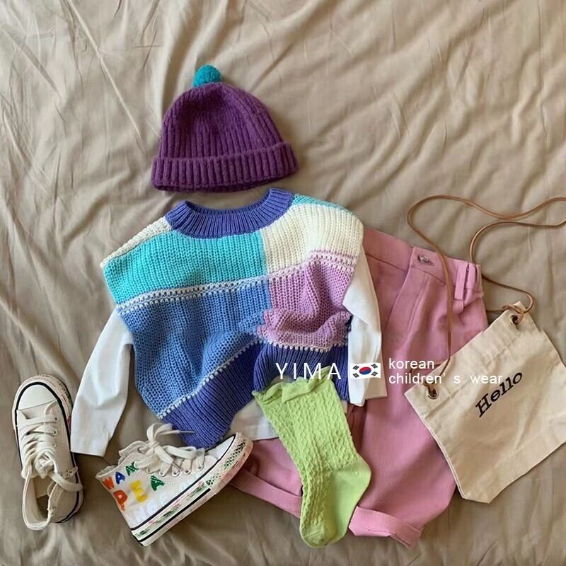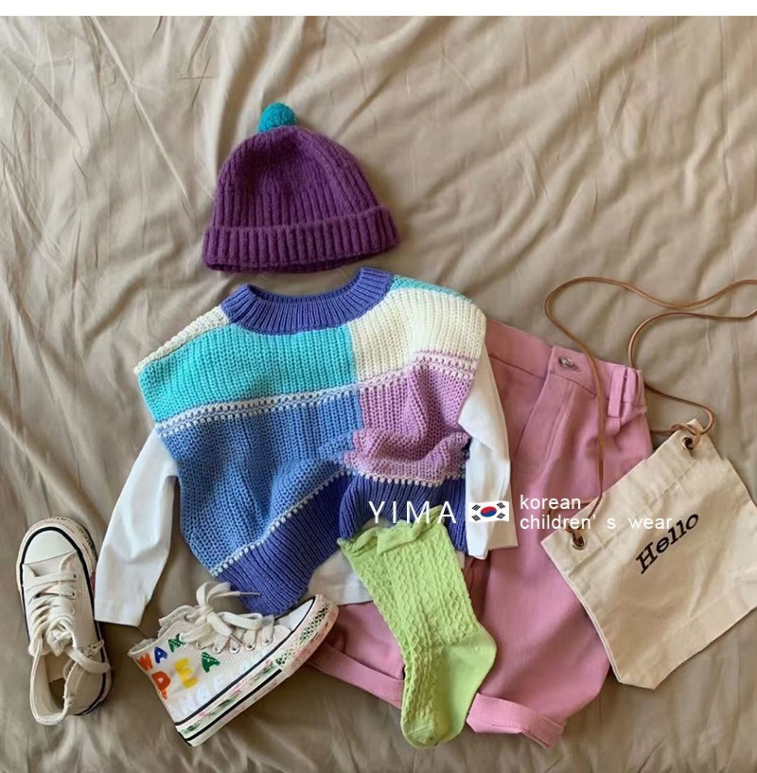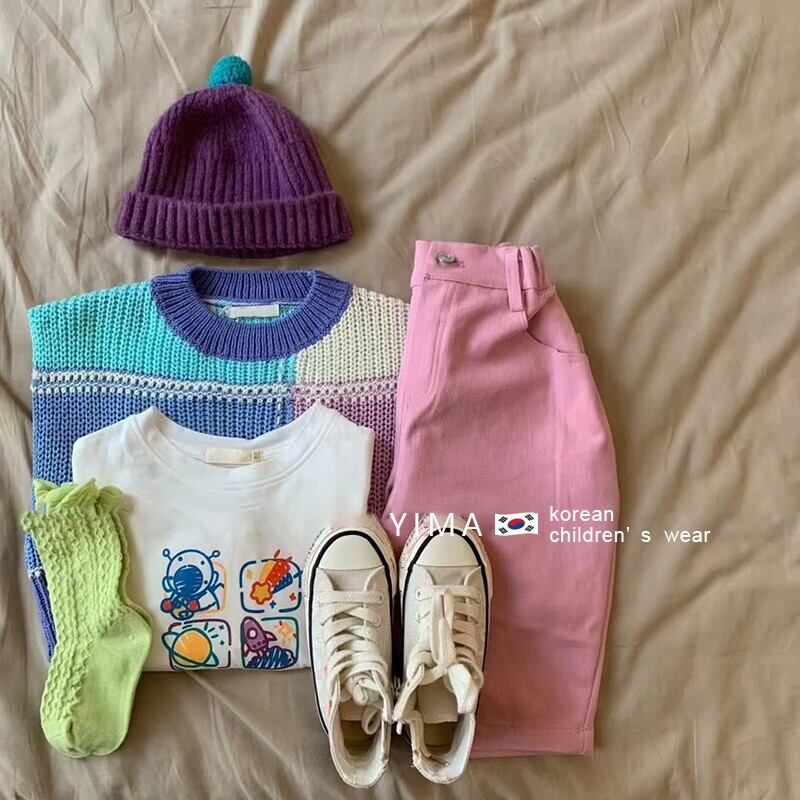 色:マカロンノースリーブセーター,白いTシャツ,ピンクのパンツ