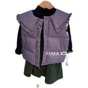 色:黒,緑のスカート,アプリコットチェック柄ベスト,パープルコットンベスト