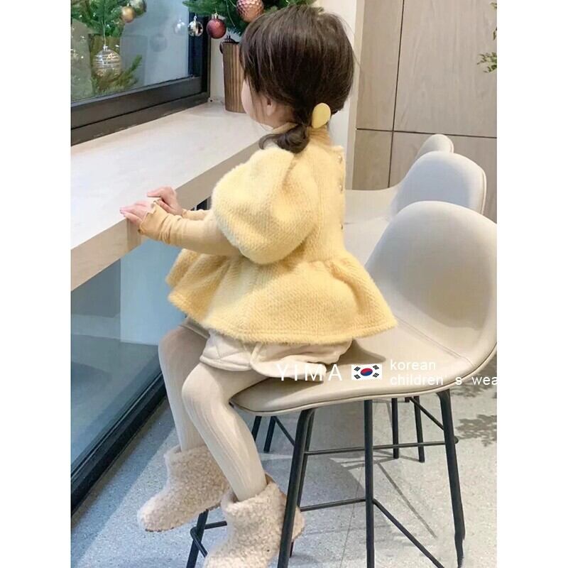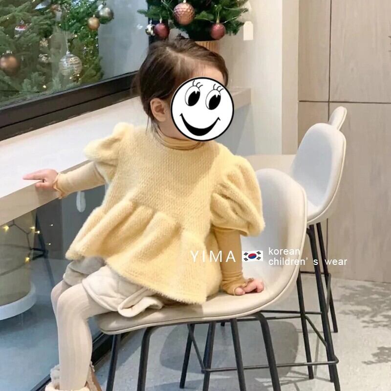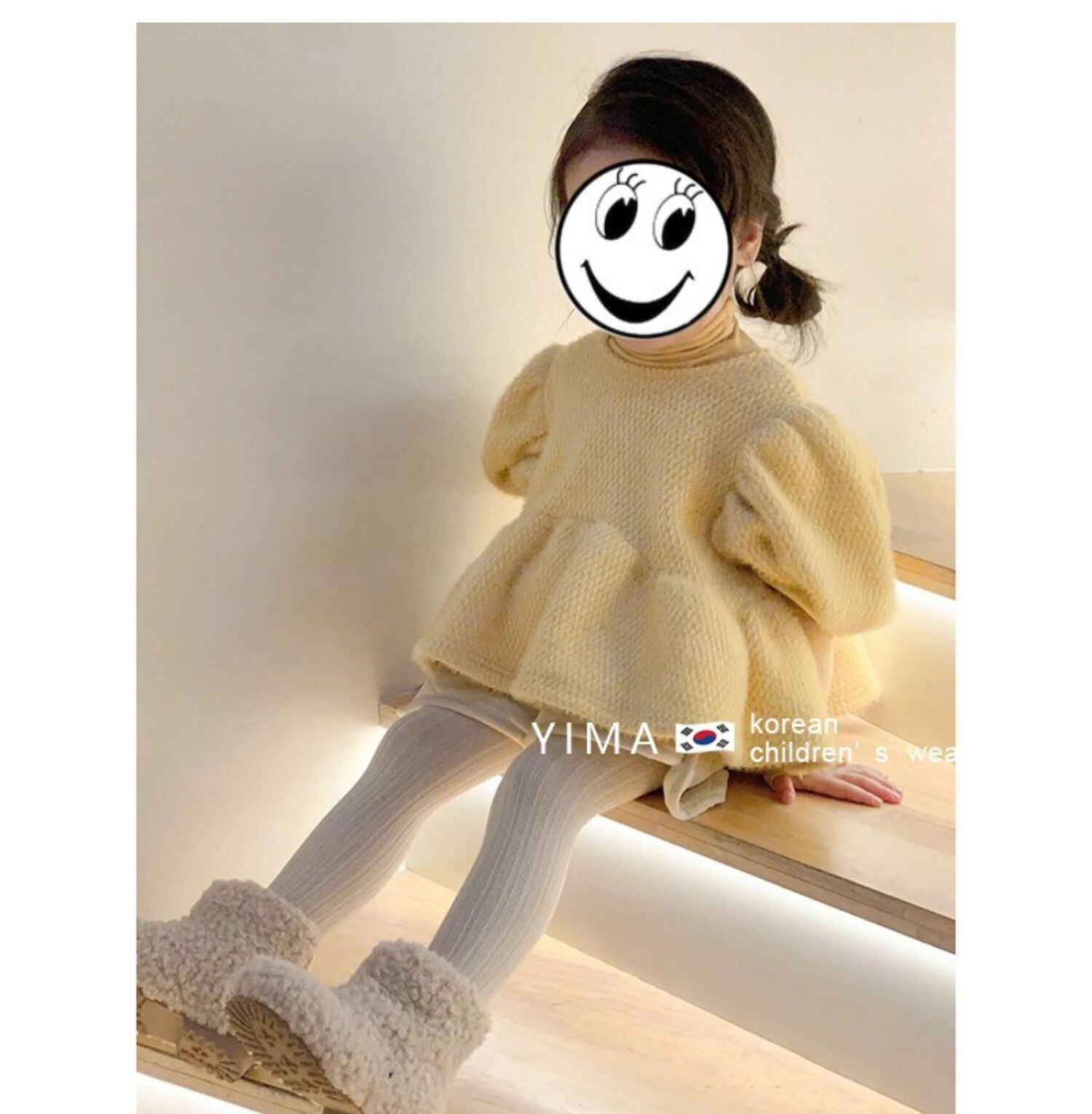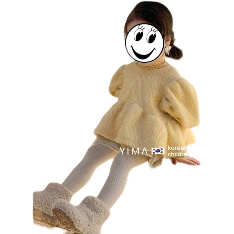 色:クリームイエロートップ,アプリコットアーガイルスカート,黄色のボトミングシャツ