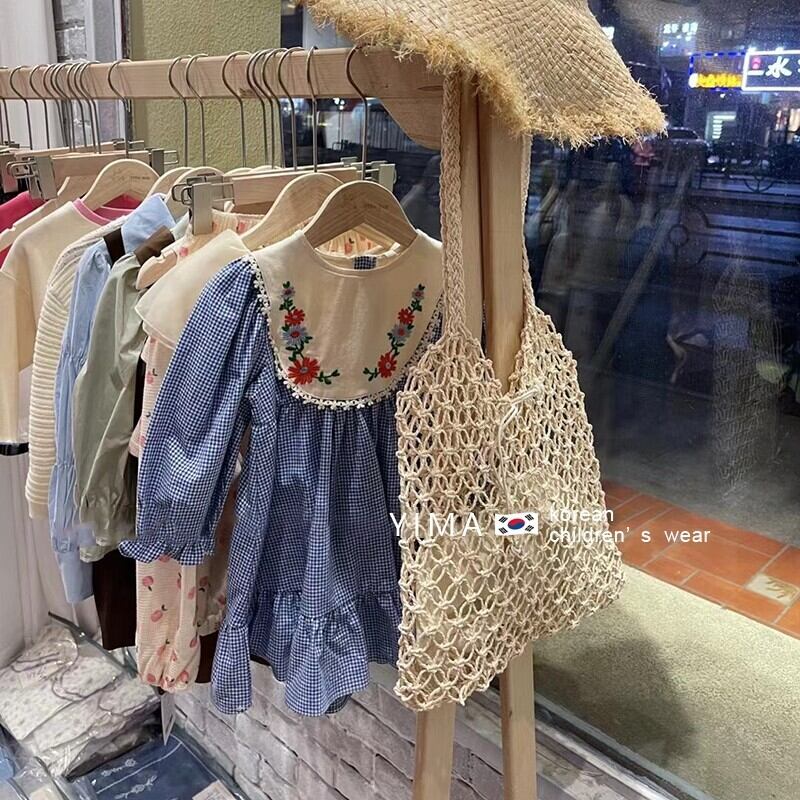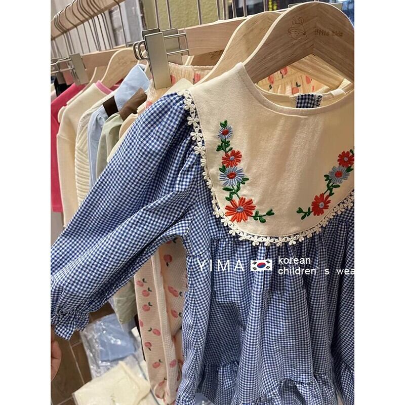 スプリング格子柄ドレス スタイルFlowerデザイン ロング レッド 刺繍 春物 フラワーデザイン 3/14 春夏 SS mi0974119027017 | Sagittarius By Constellation -KIDS&BABY-