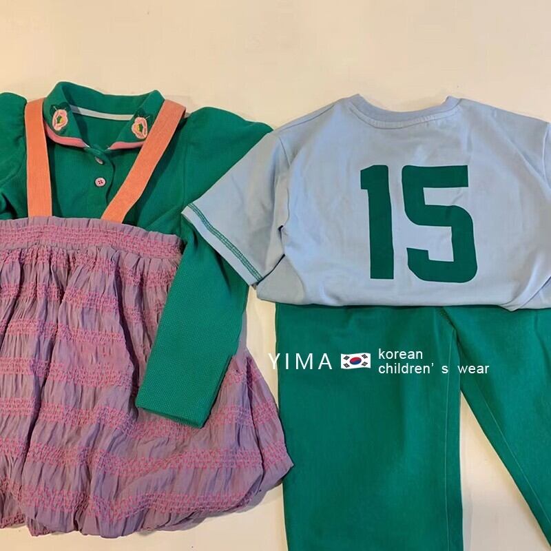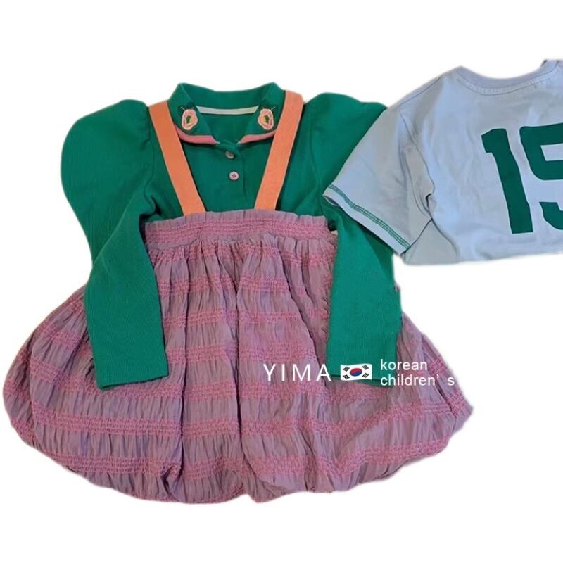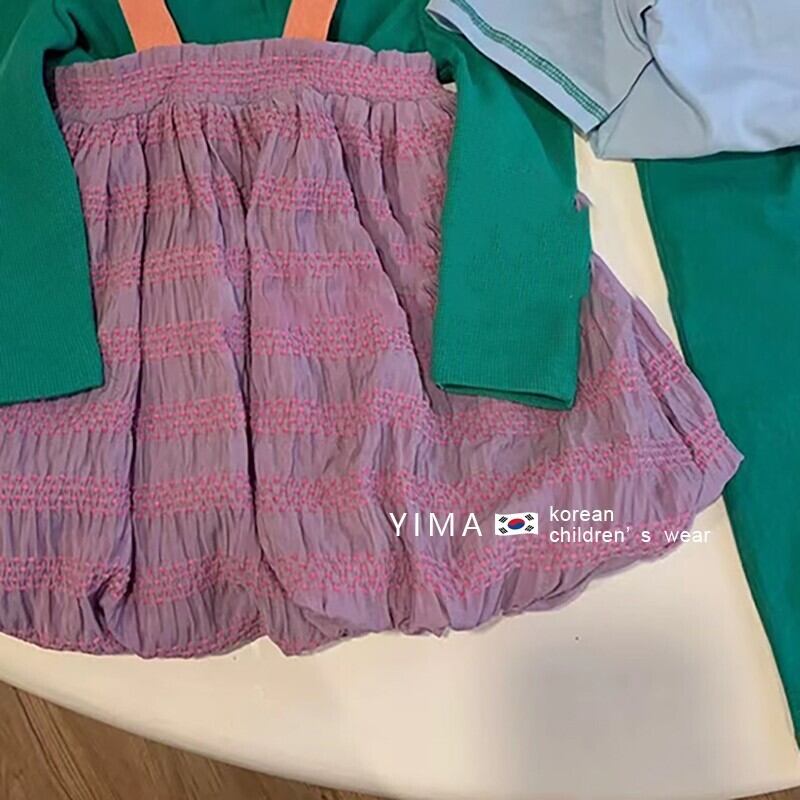 色:グリーンロングスリーブトップ,パープルビブスカート