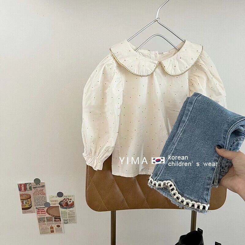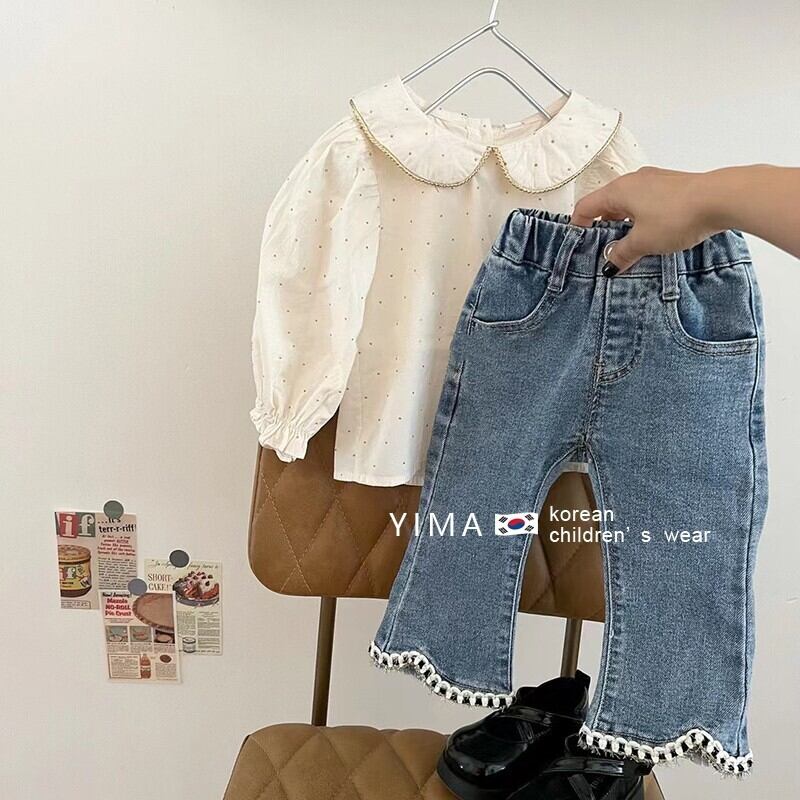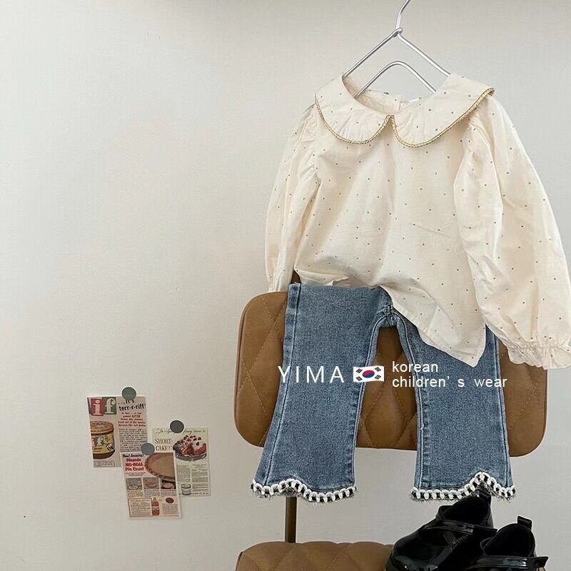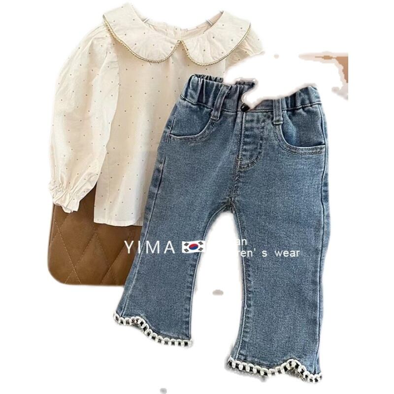 色:ブルージーンズ,ベージュのドールカラーシャツ