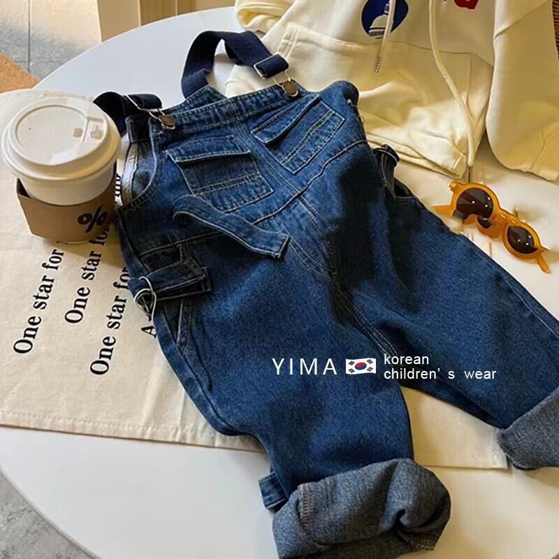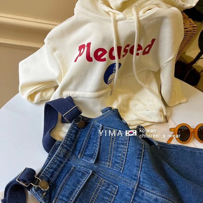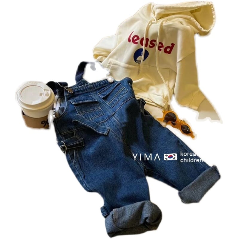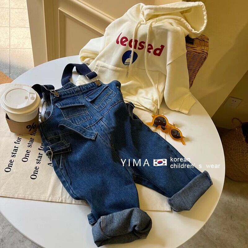 色:青いデニムのオーバーオール,アプリコットセーター