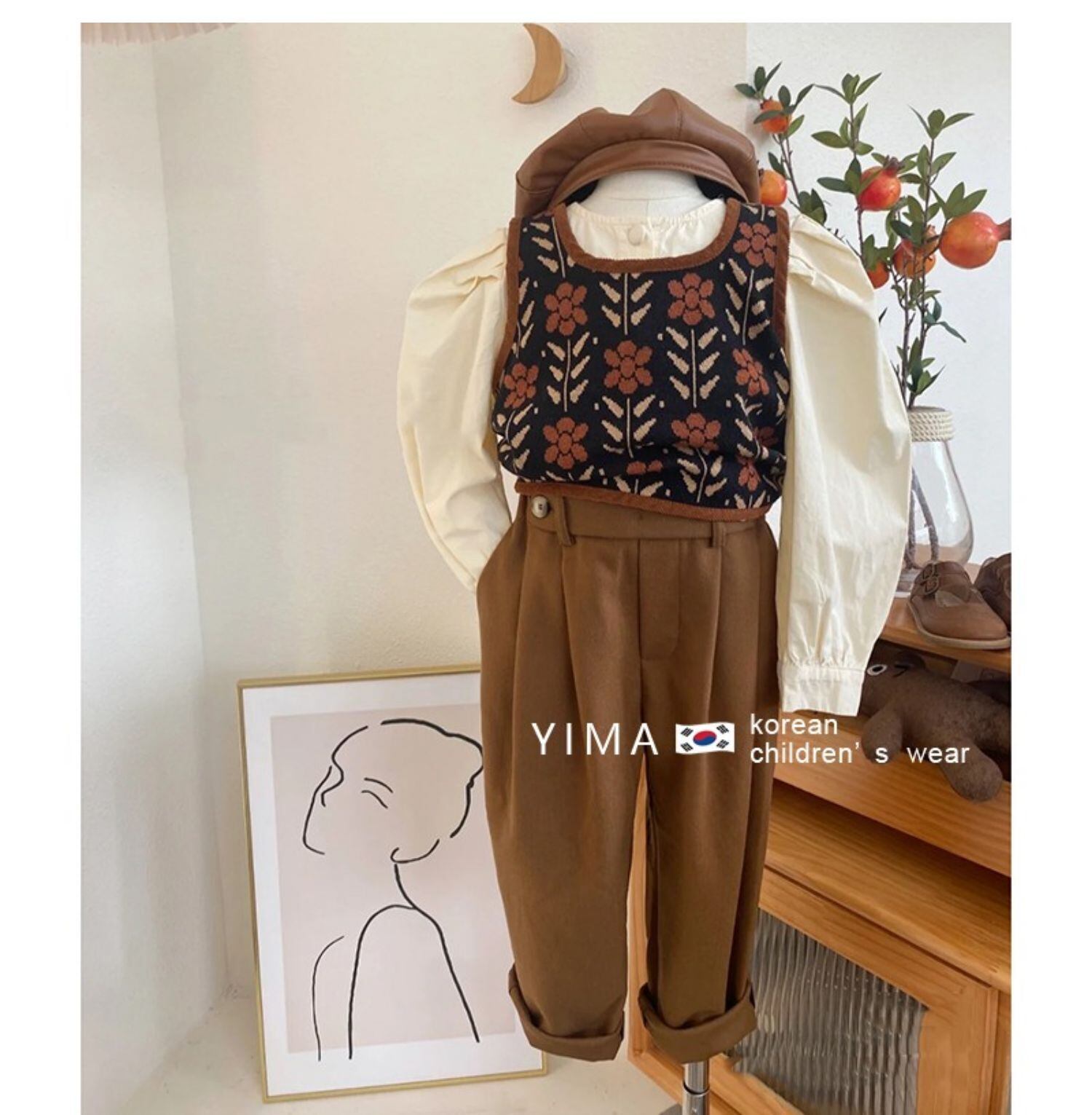 色:カラーベスト,アプリコットシャツ,メープルブラウンスラックス