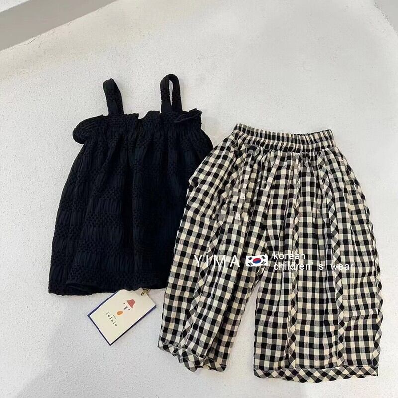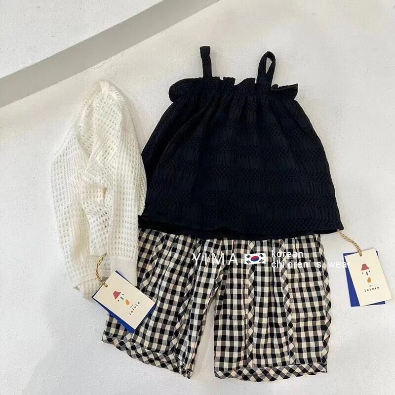 色:ブラックキャミソール,チェックパンツ,ベージュのセーター