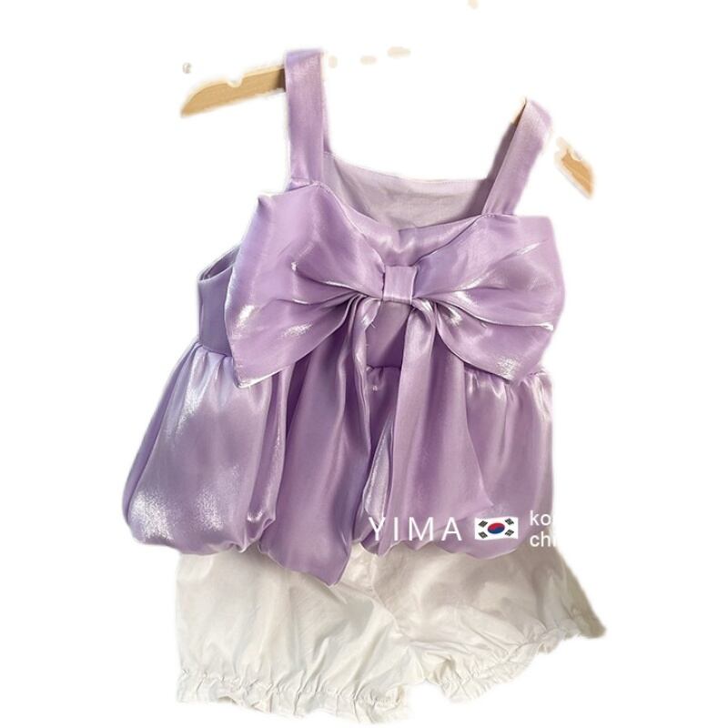 色:ローランドパープルボウブラウス,ピュアブルーボウトップ,ホワイトショーツ