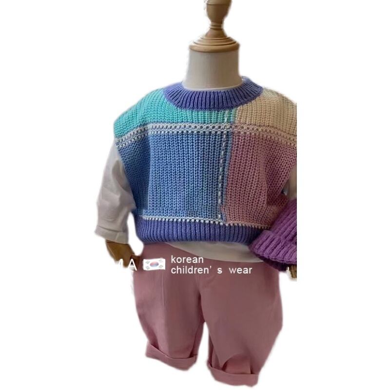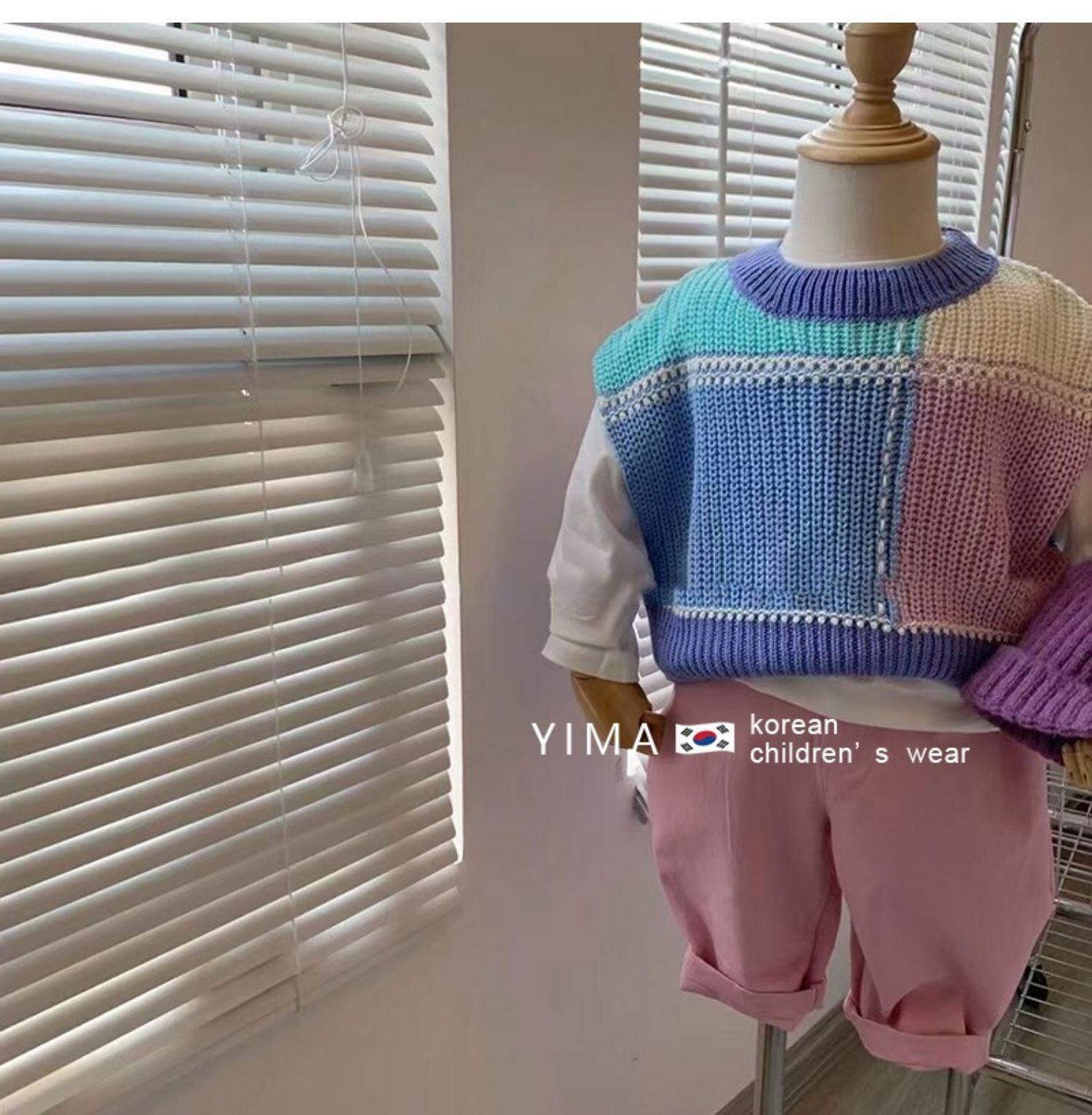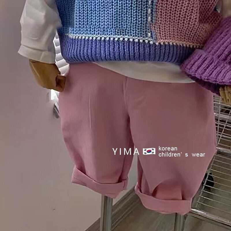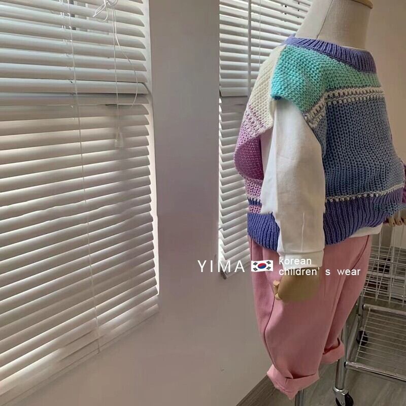 色:マカロンノースリーブセーター,白いTシャツ,ピンクのパンツ