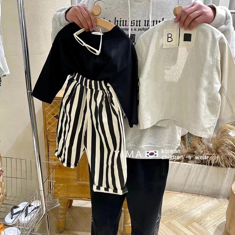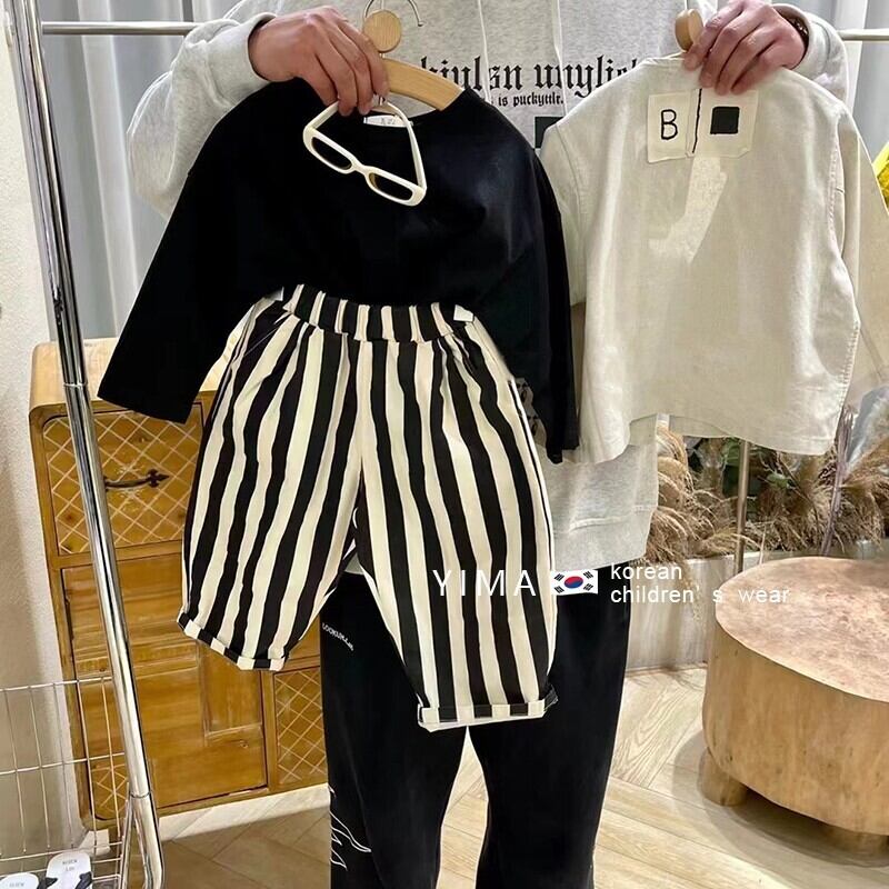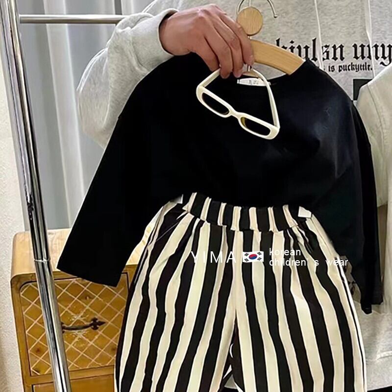 色:ストライプカジュアルパンツ,ブラックトップ,ホワイトトップ