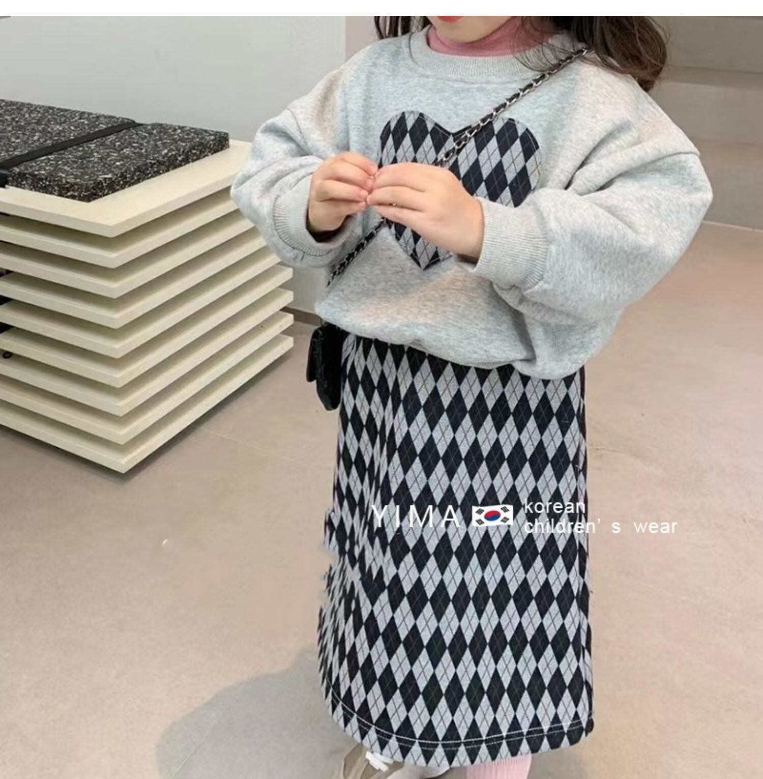 色:グレーのセーター,チェック柄スカート,セータースカートセット