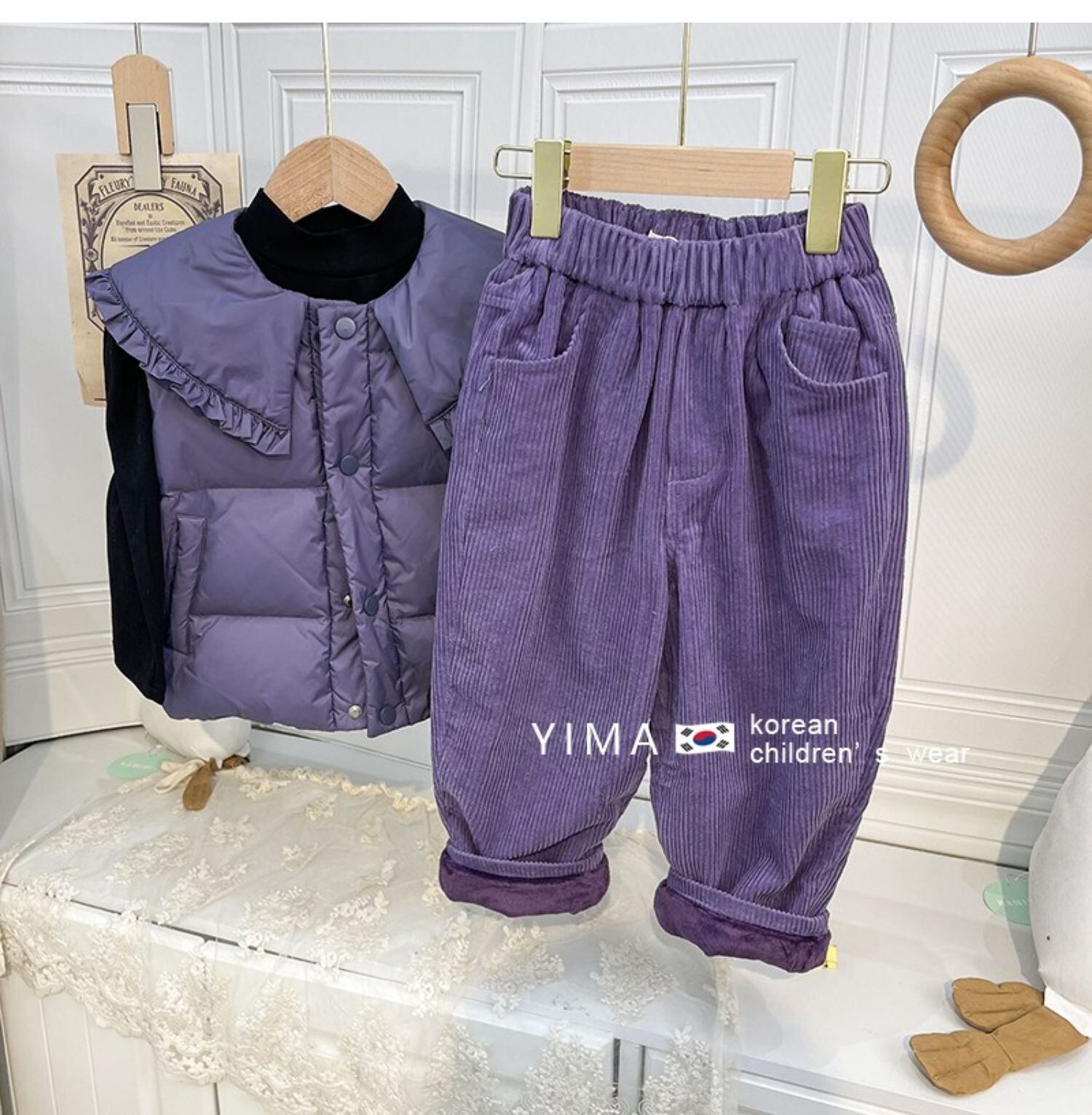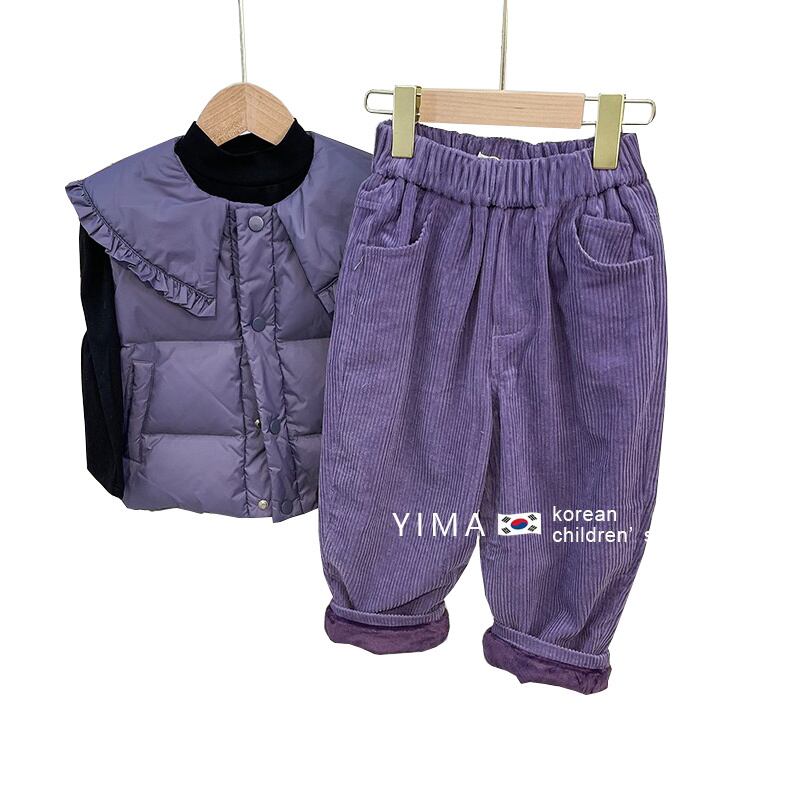 色:パープルフリースパンツ,パープルベスト,黒底シャツ,紫のベルベットパンツなし