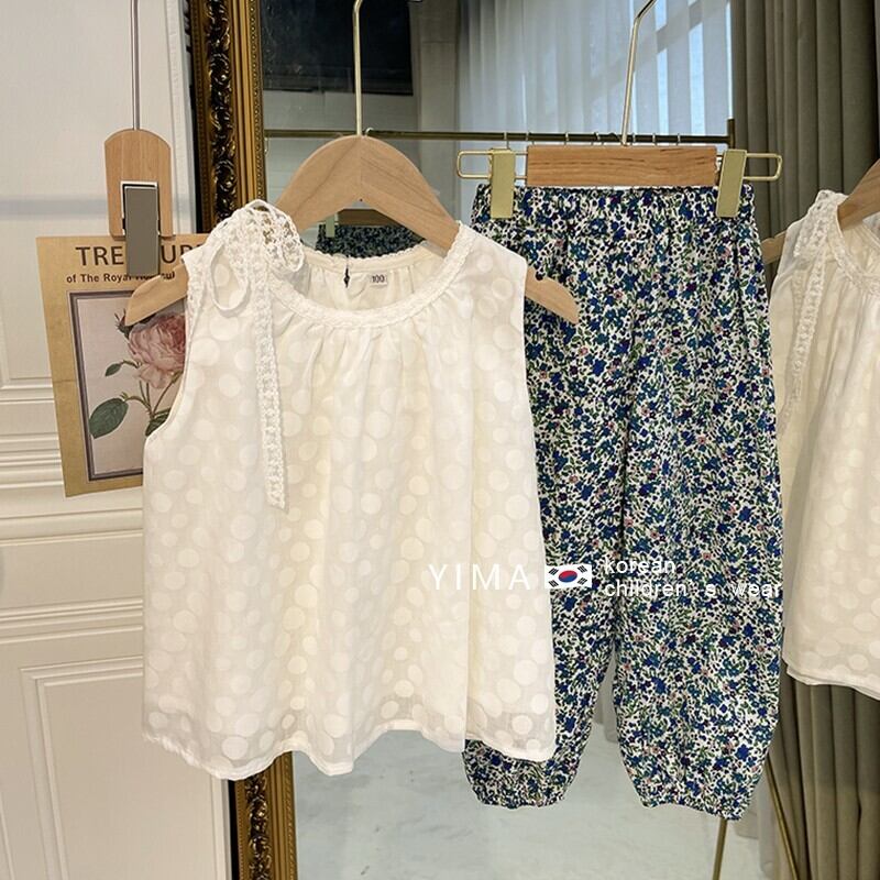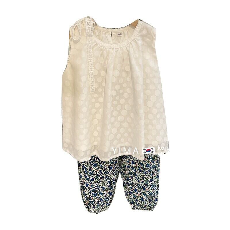 サマーノースリーブ水玉シャツ フローラルパンツ スタイル薄手 夏物 花柄 3/14 春夏 SS mi0939607912186 | Sagittarius By Constellation -KIDS&BABY-