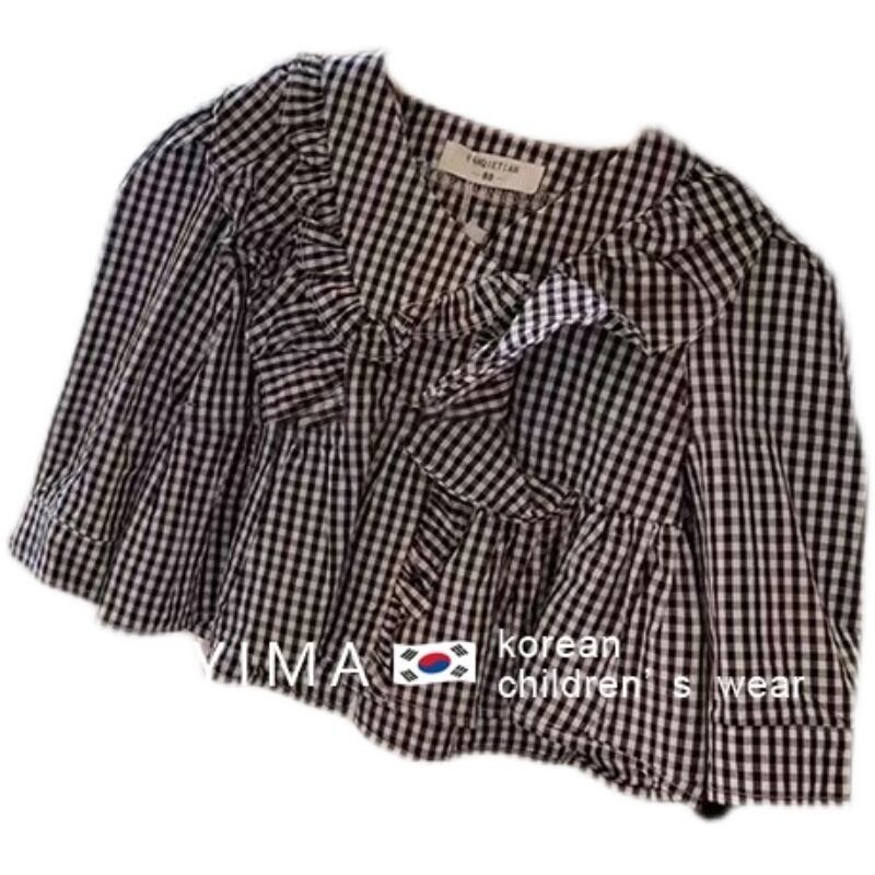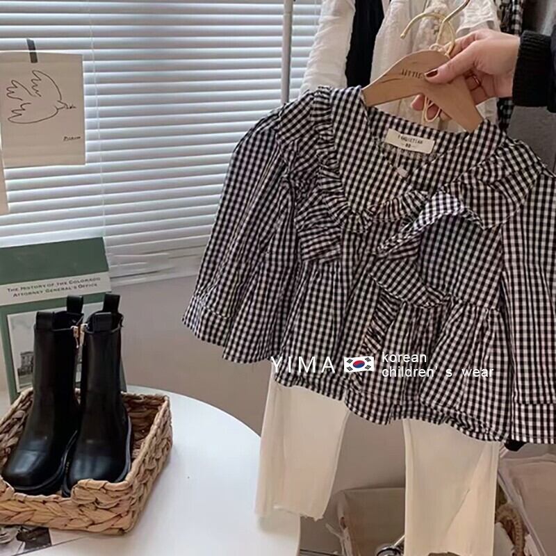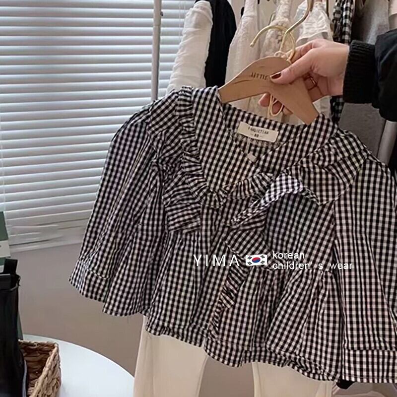 スプリング格子柄シャツ スタイルラッフルトップス ロング 春物 3/14 春夏 SS mi0949693458330 | Sagittarius By Constellation -KIDS&BABY-