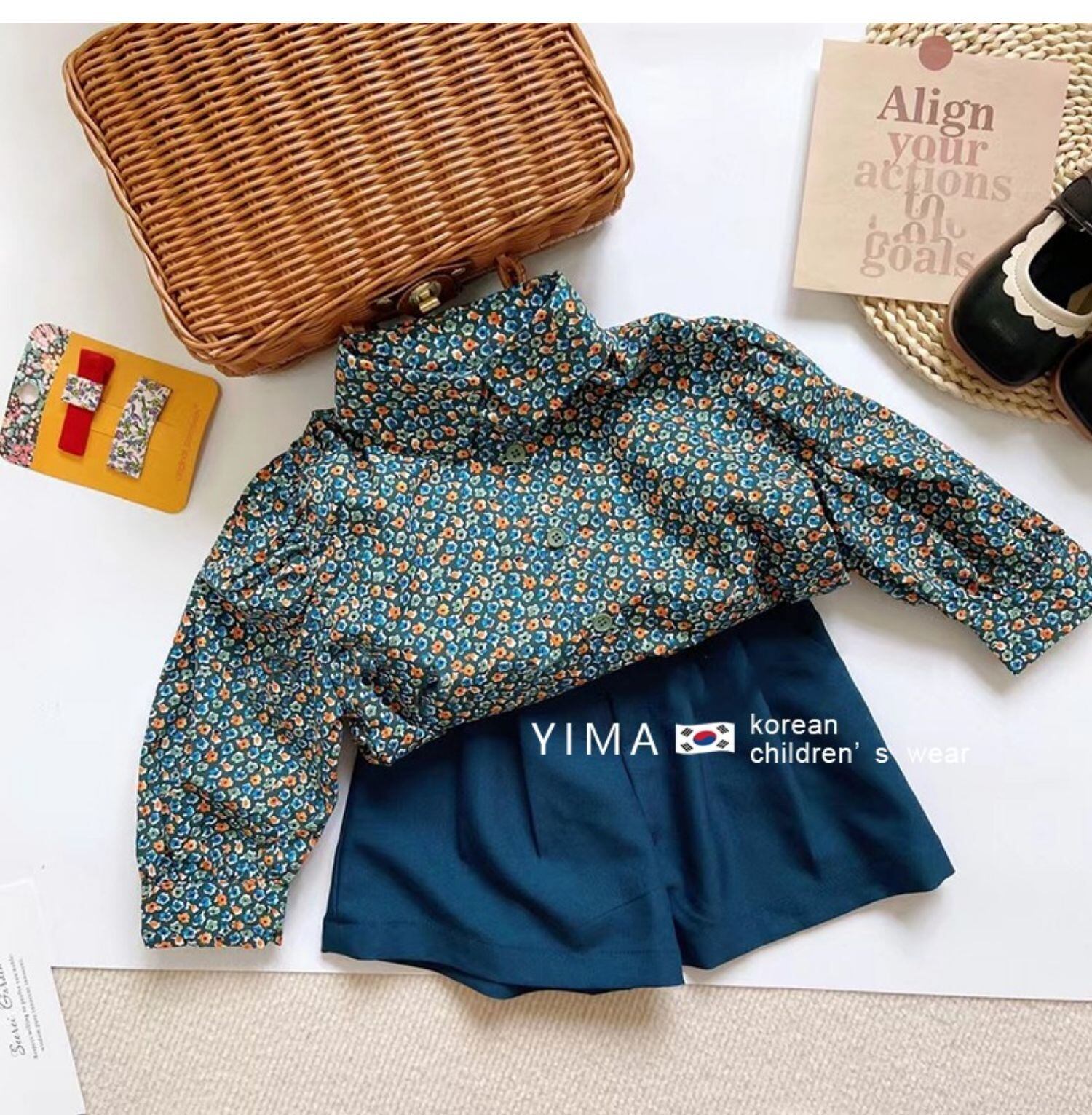 色:緑の花柄のシャツ,レイクグリーンパンツ
