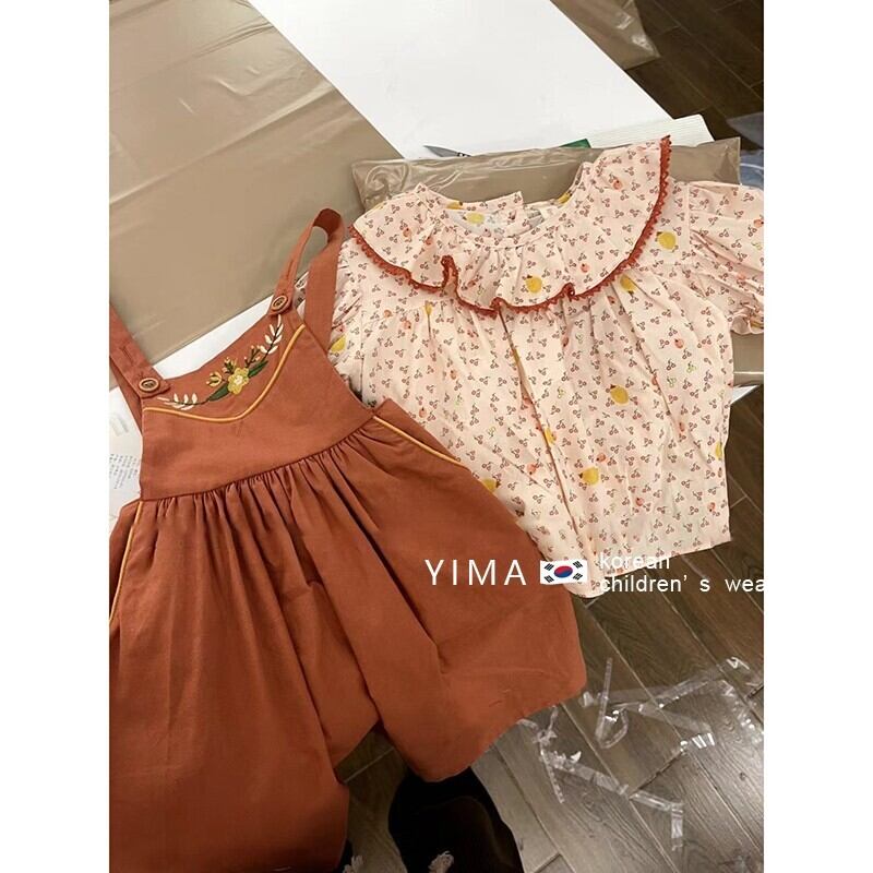 色:オレンジサスペンダースカート,アプリコットシャツ
