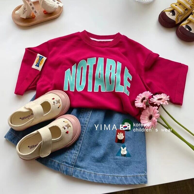 色:フクシアトップ,青いスカート