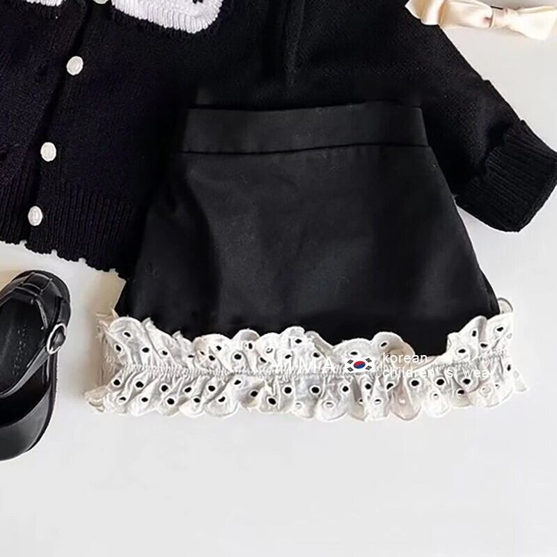 色:ブラックラペルセーター,黒のショートパンツ