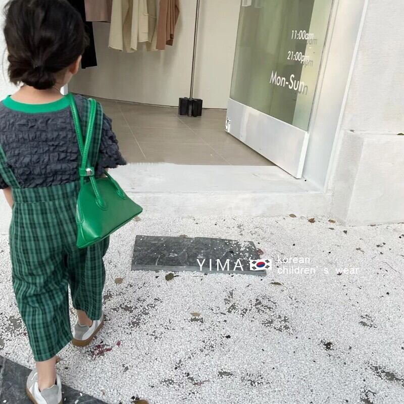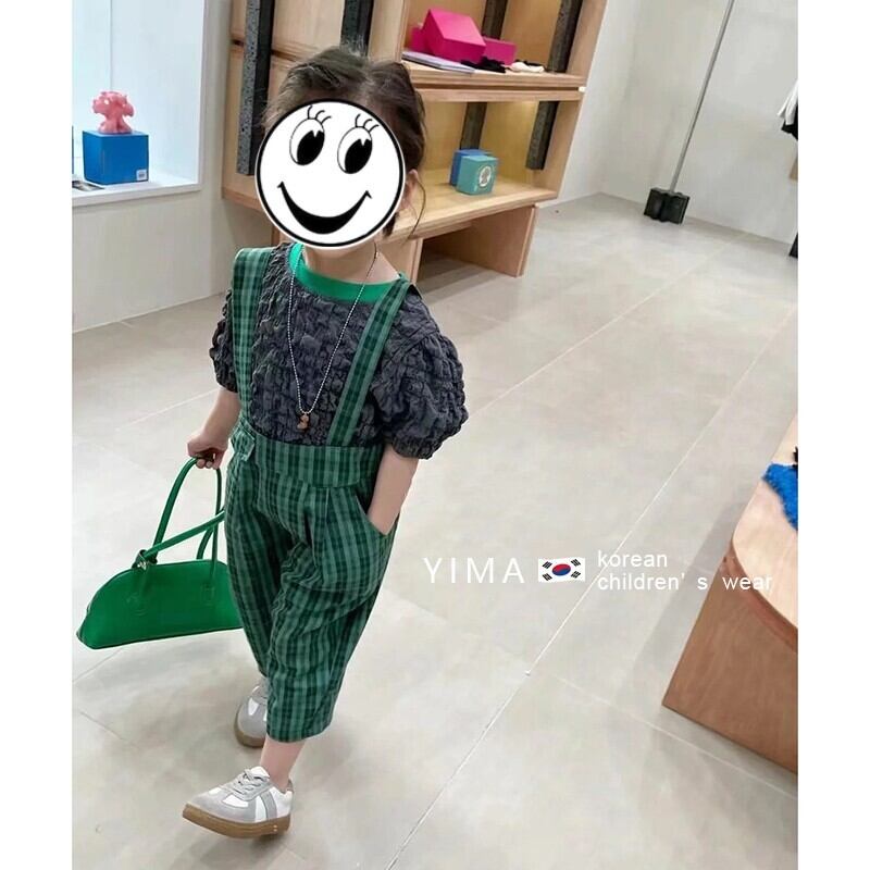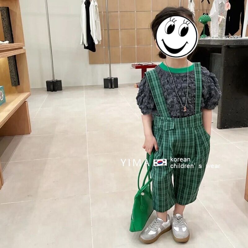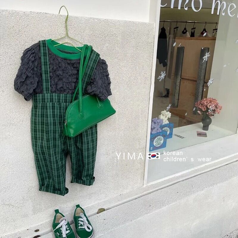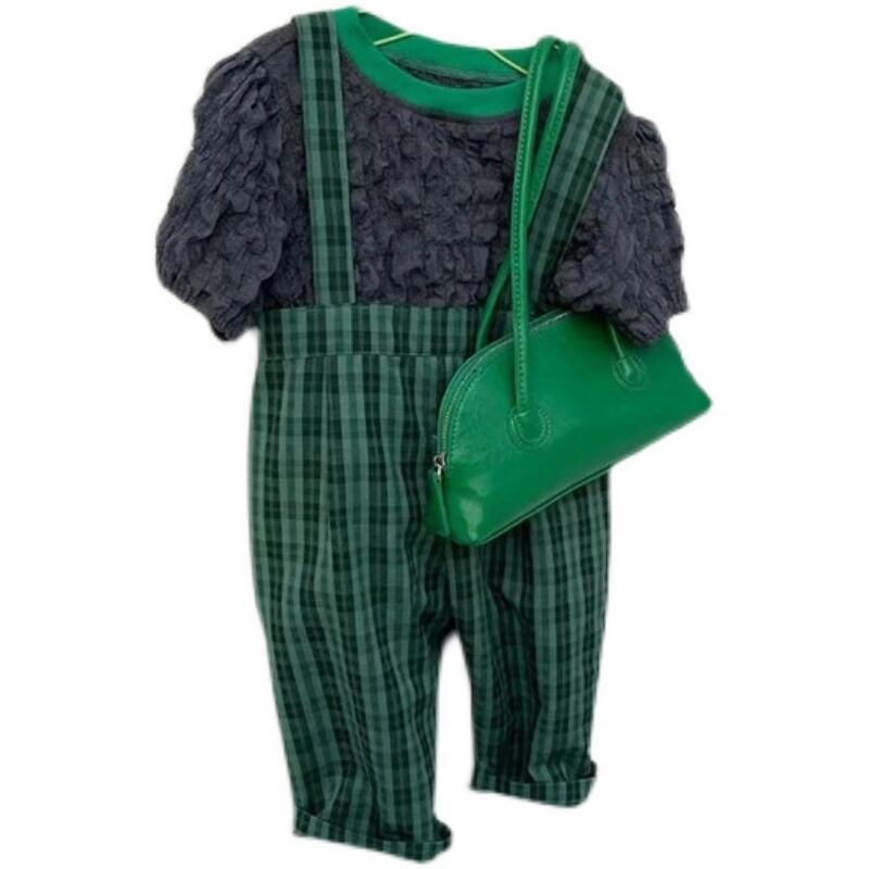 色:ブラックトップ,グリーンチェック柄オーバーオール