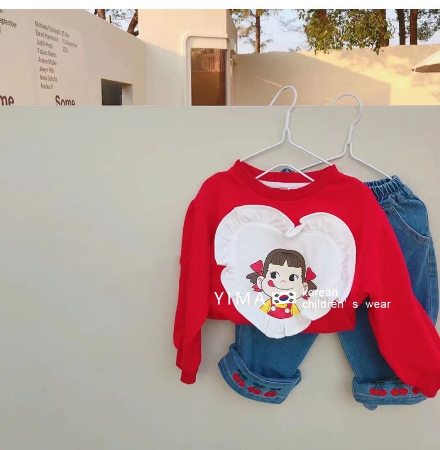 色:赤いセーター,青いセーター,白いズボン