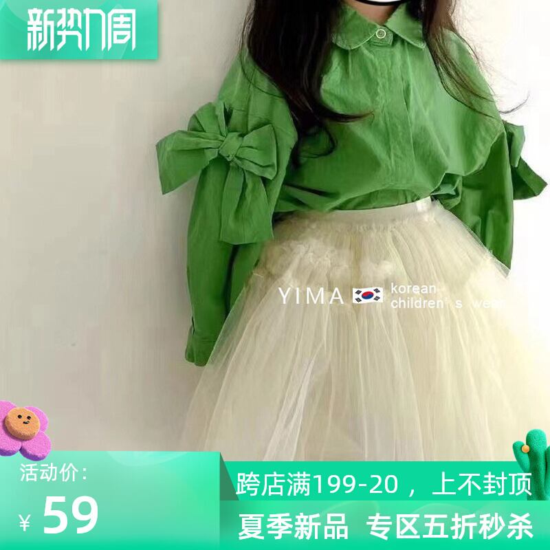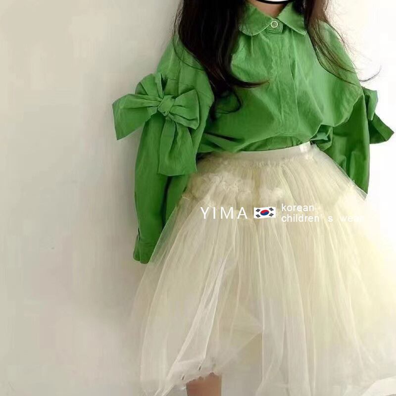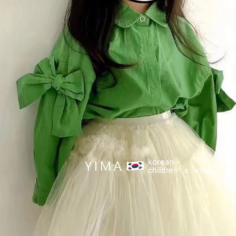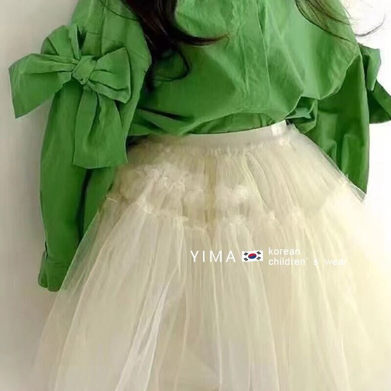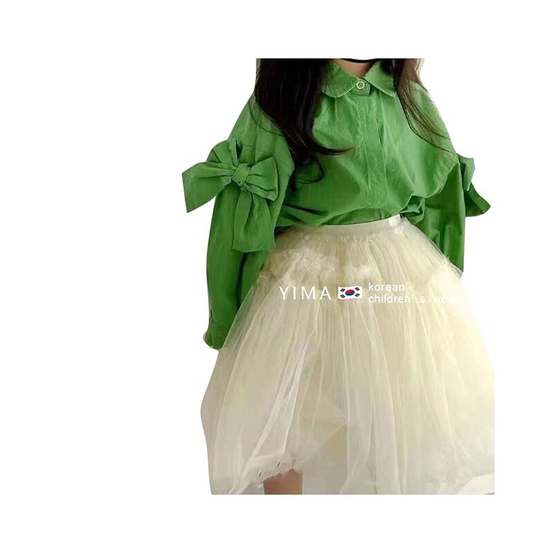 色:緑のシャツ,白いスカート