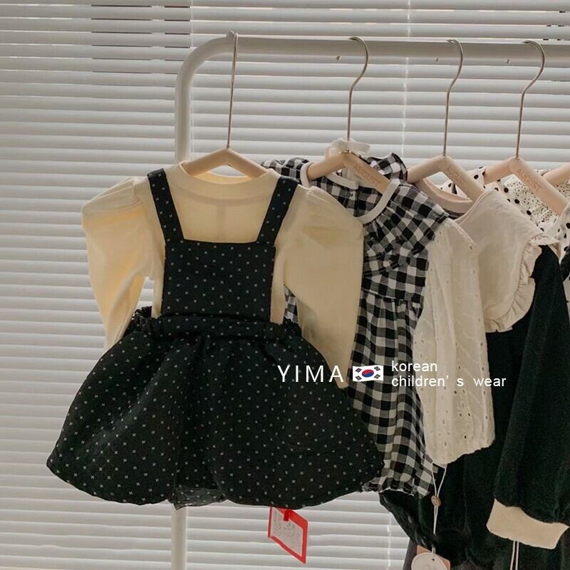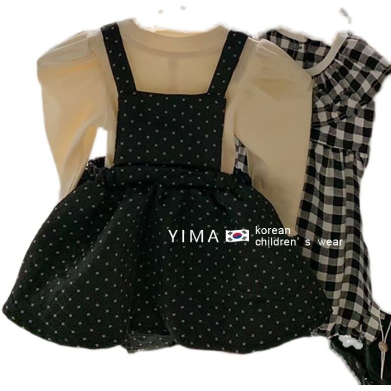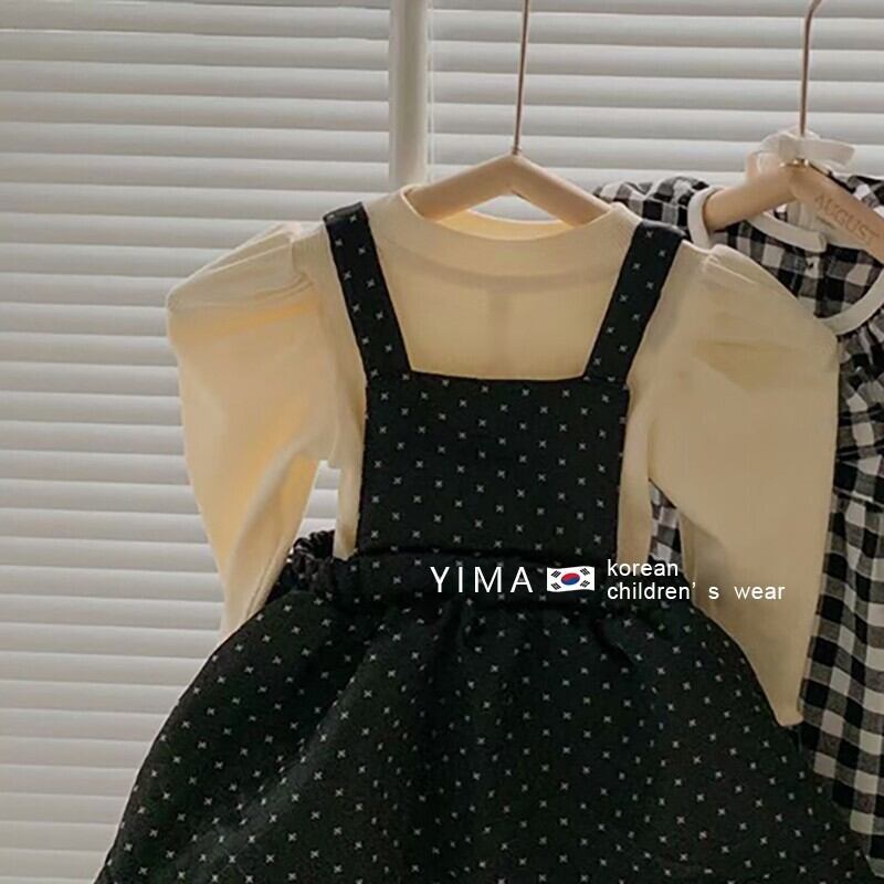 色:ブラックストラップドレス,アプリコットボトムスシャツ