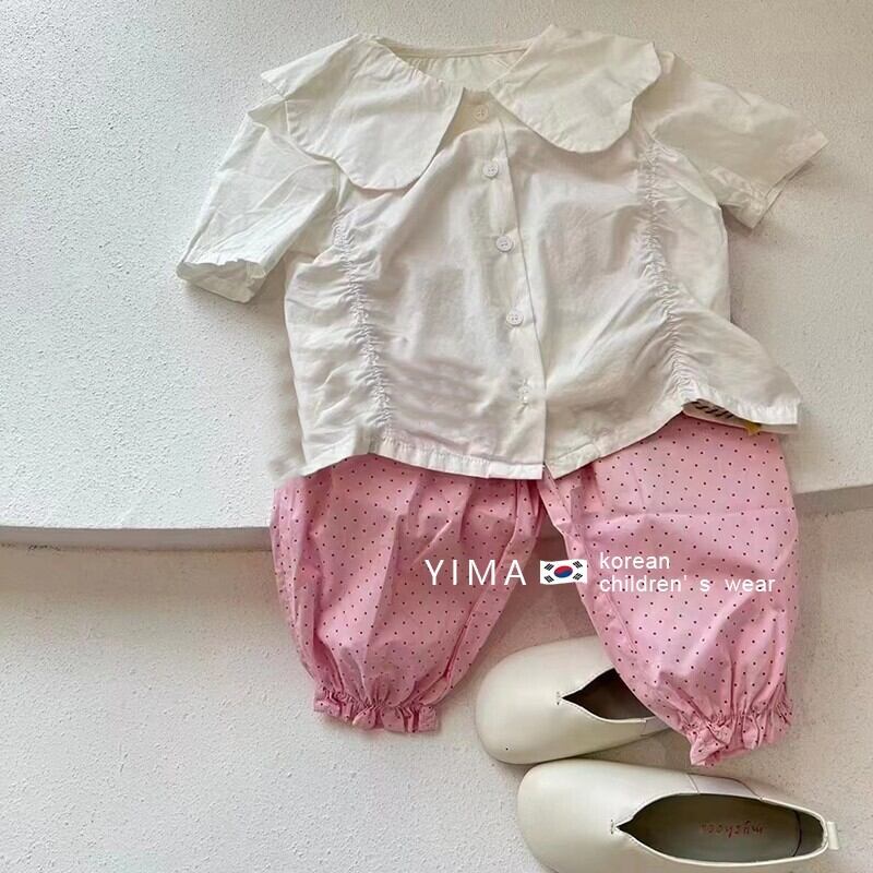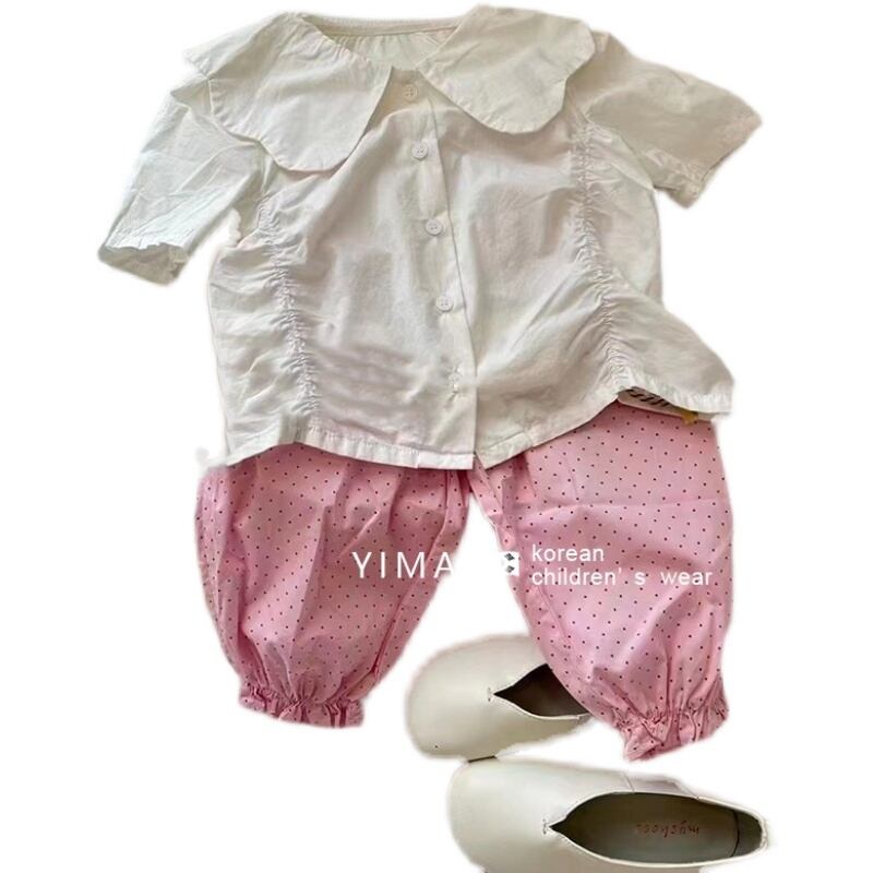 色:ホワイトペタルカラーシャツ,桜ピンクのブルマ