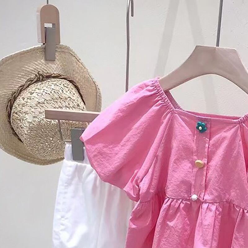 色:ピンクのシャツ,ホワイトショーツ,シャツトップ+白ショートパンツ