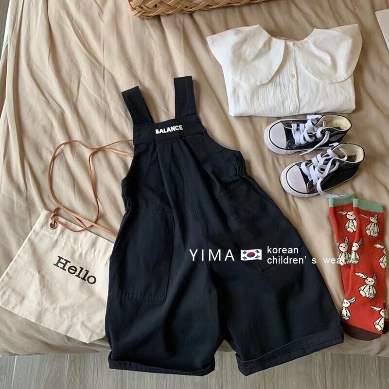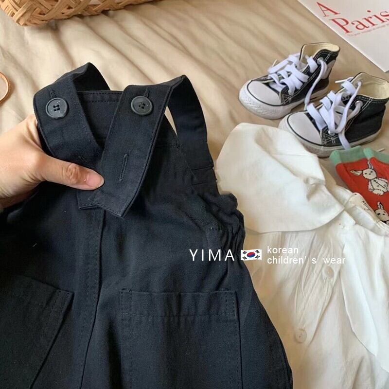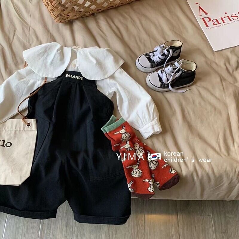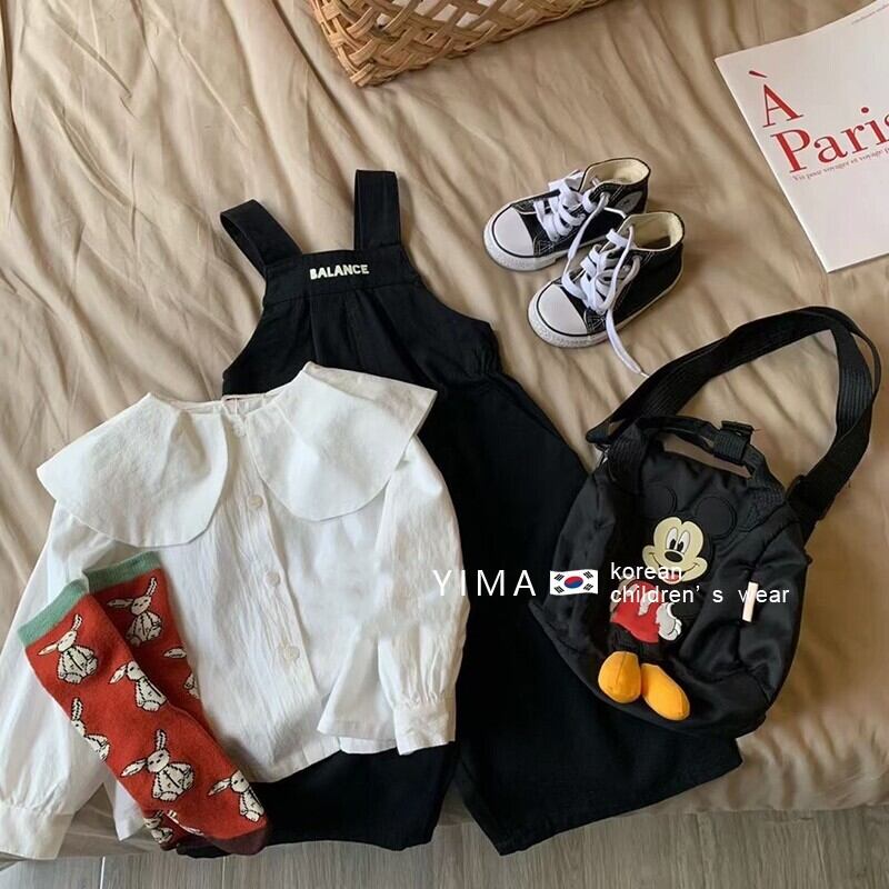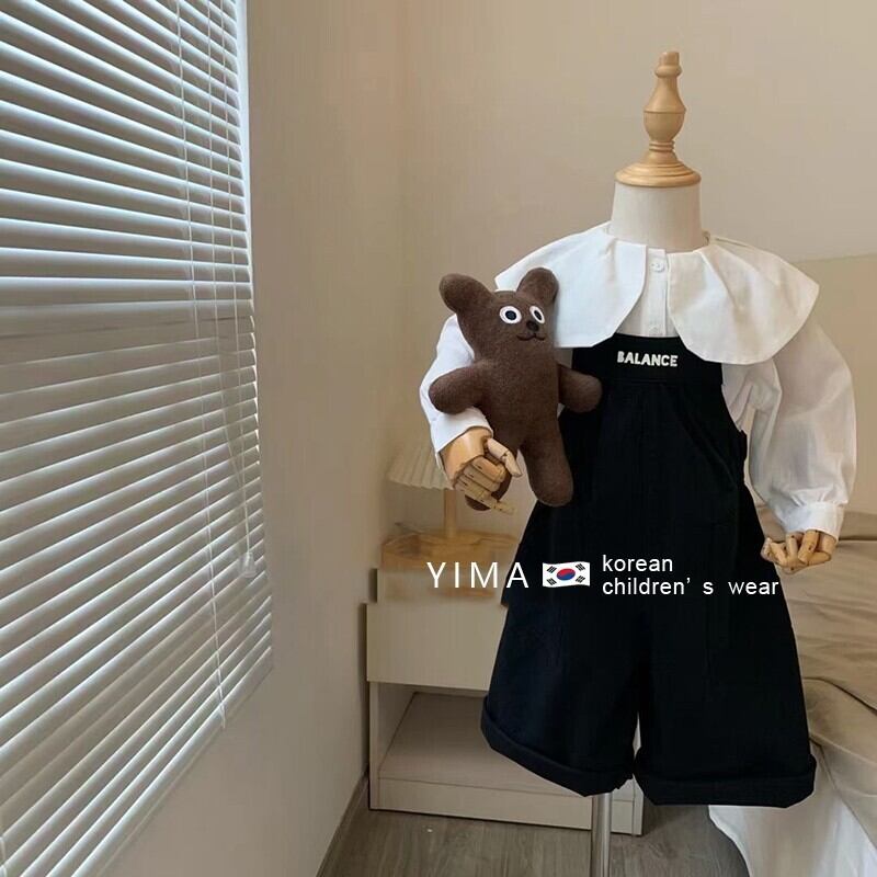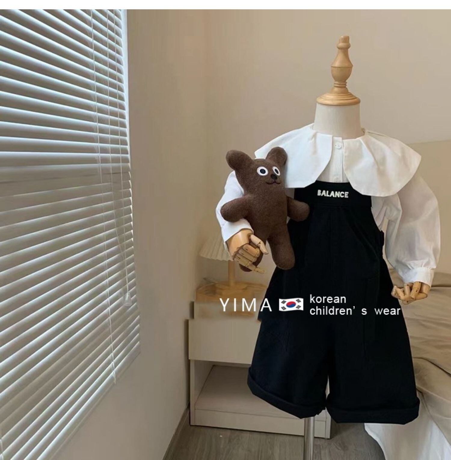 色:黒いオーバーオール,白い人形の襟のシャツ