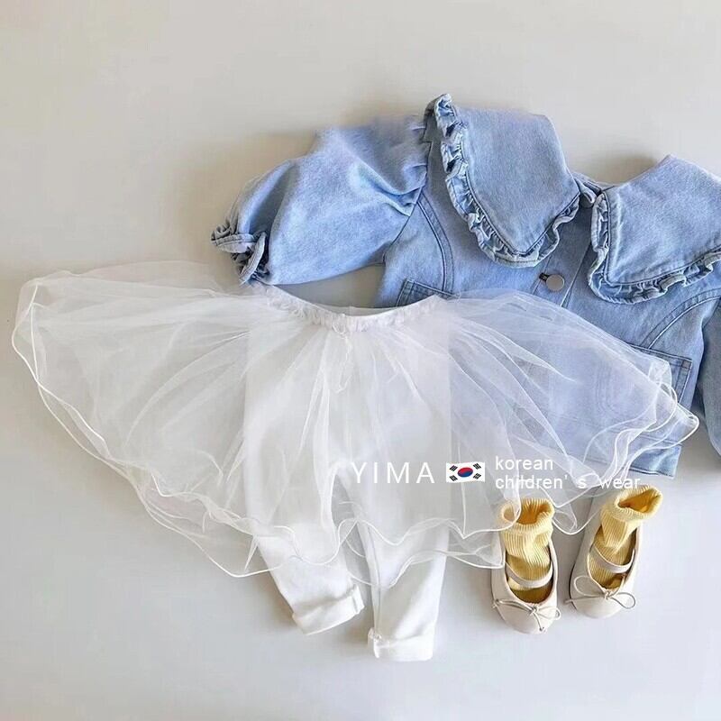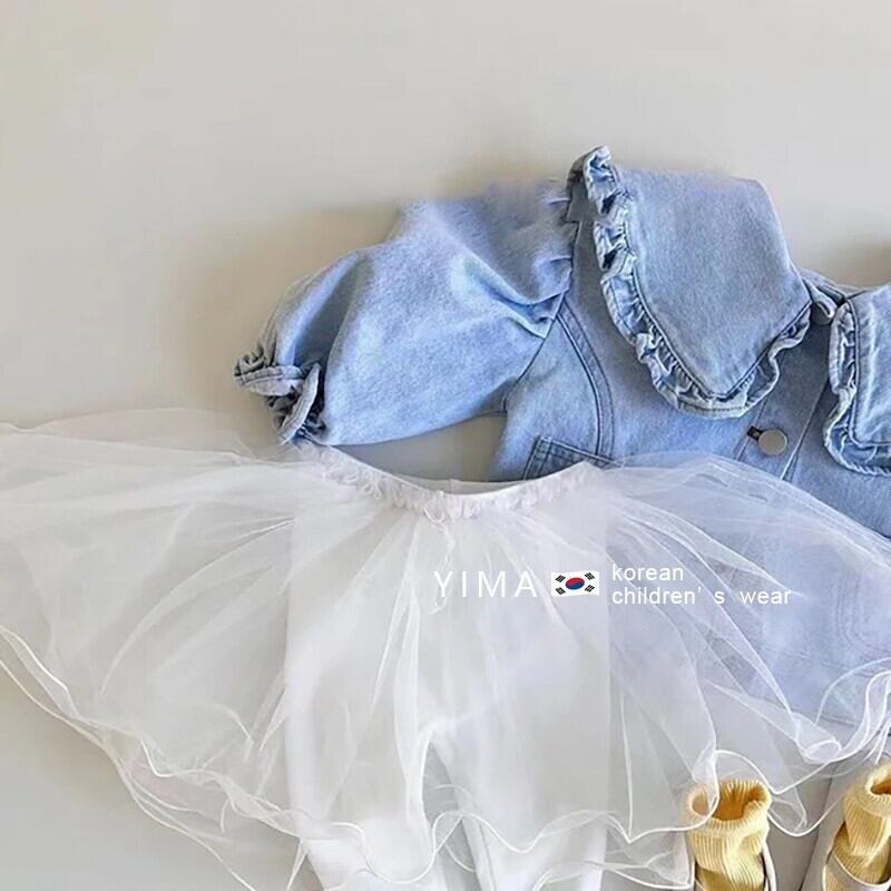 色:ブルーデニムジャケット,白いボトミングキュロット