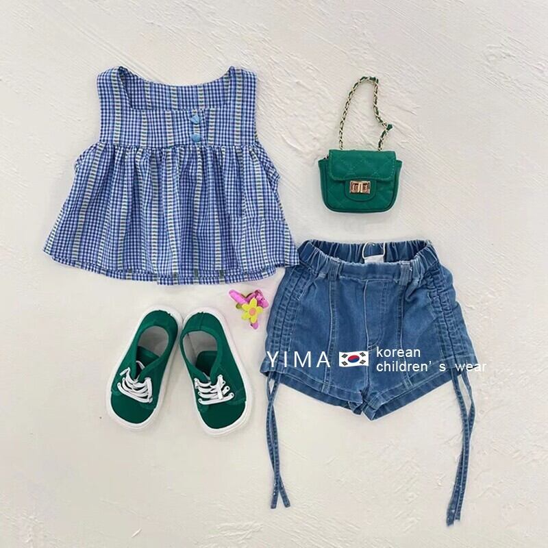 サマースタイルノースリーブブルー格子柄ショーツ 夏物 ブルマー 3/14 春夏 SS mi0977756677453 | Sagittarius By Constellation -KIDS&BABY-