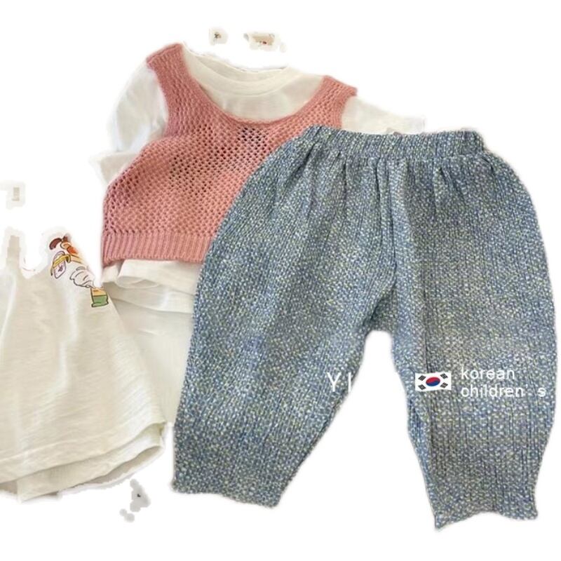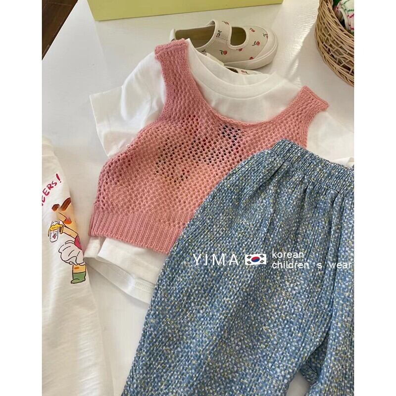 色:グレーパンツ,オレンジピンクのベスト,白い漫画T