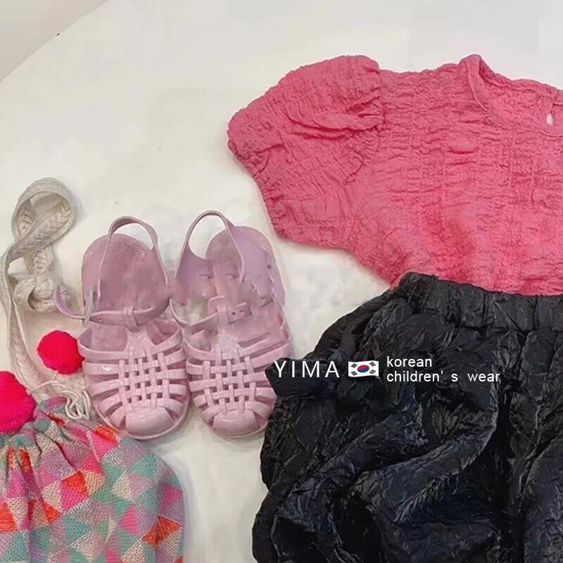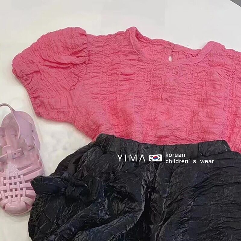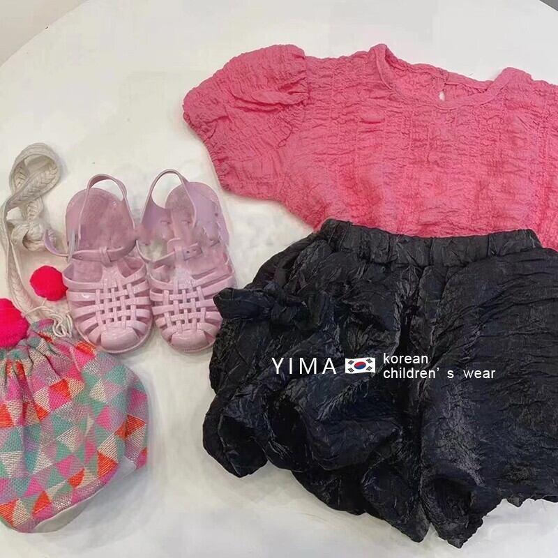 色:ピンクトップ,黒のショートパンツ