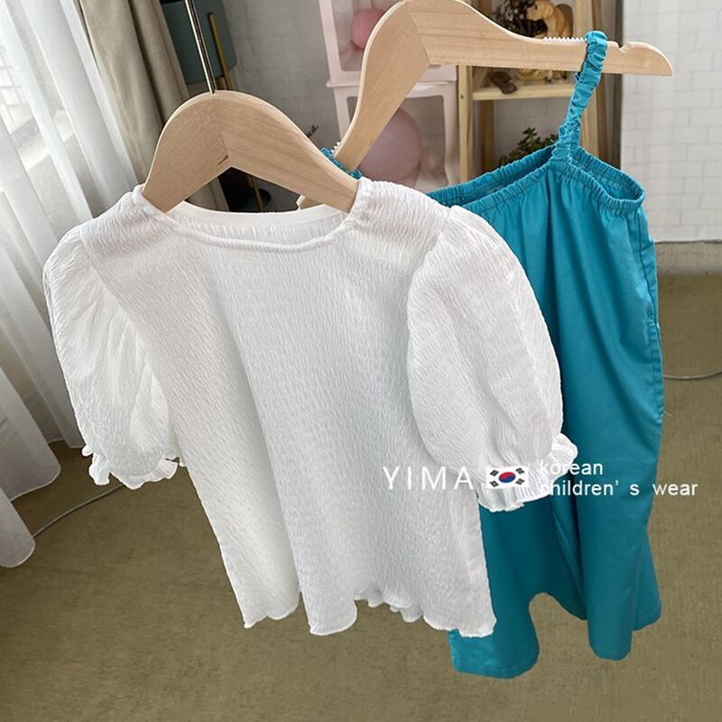 色:白のシャツ,青いオーバーオール