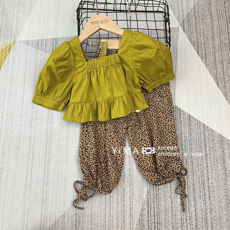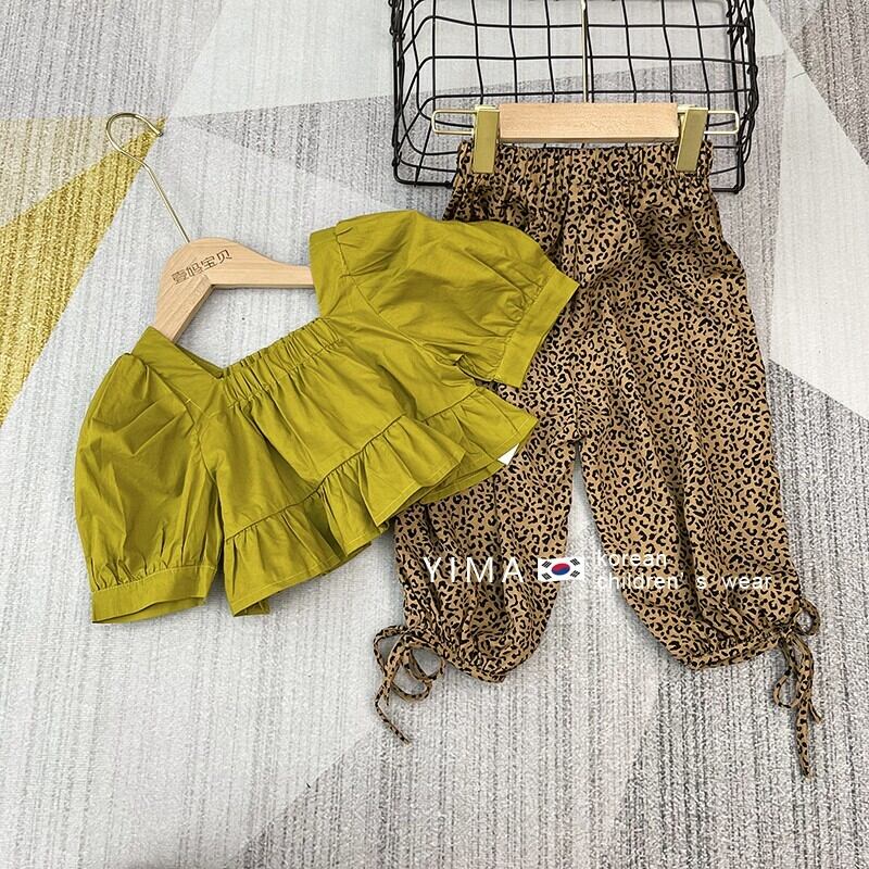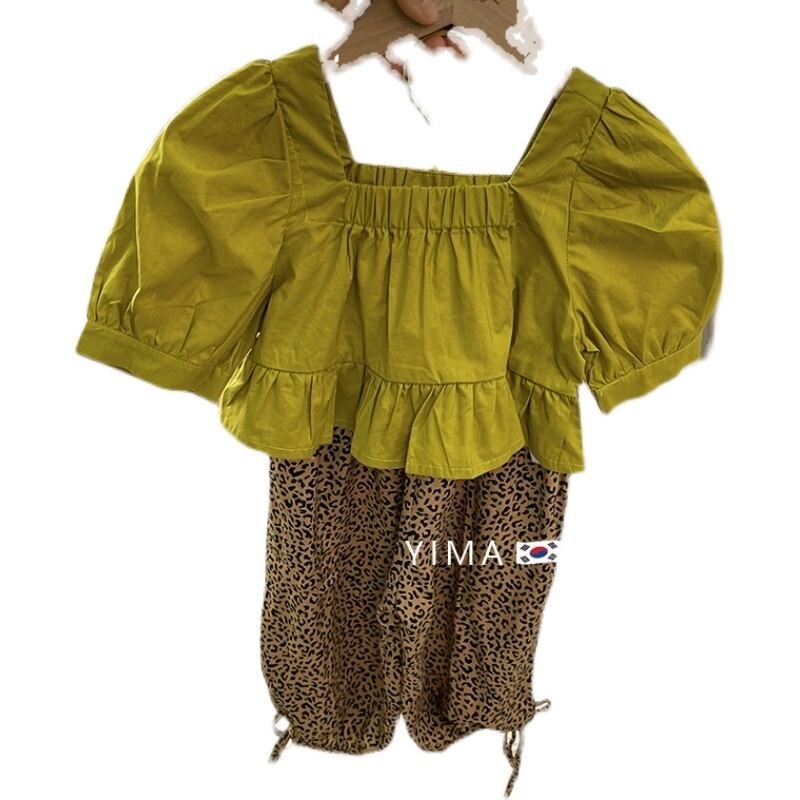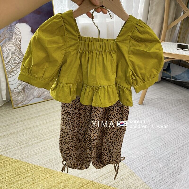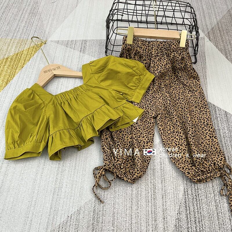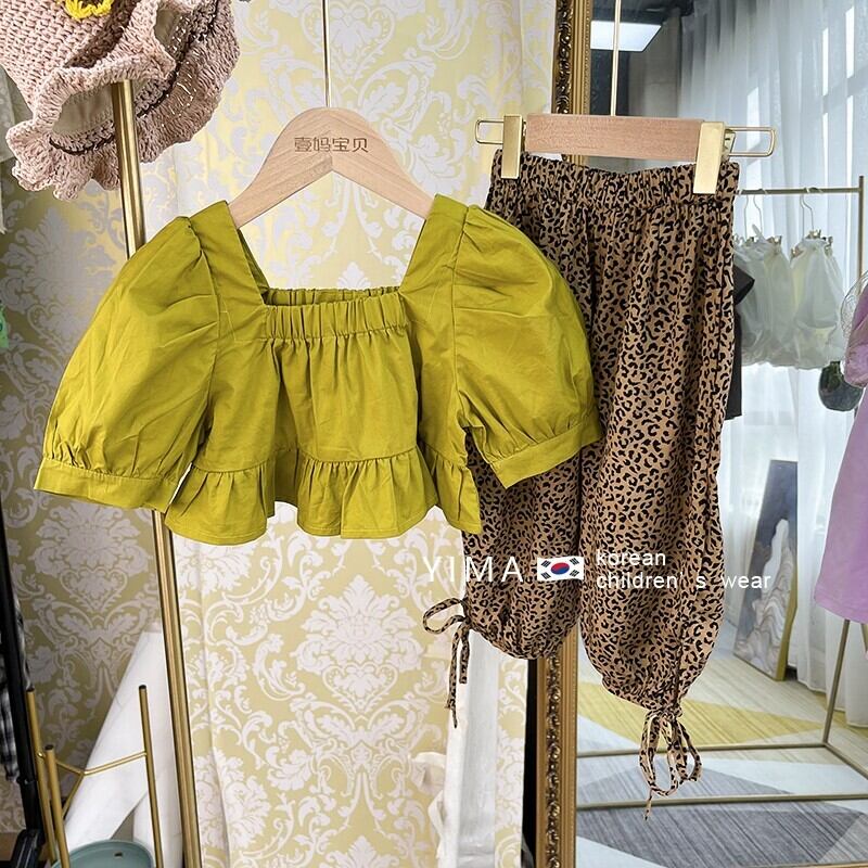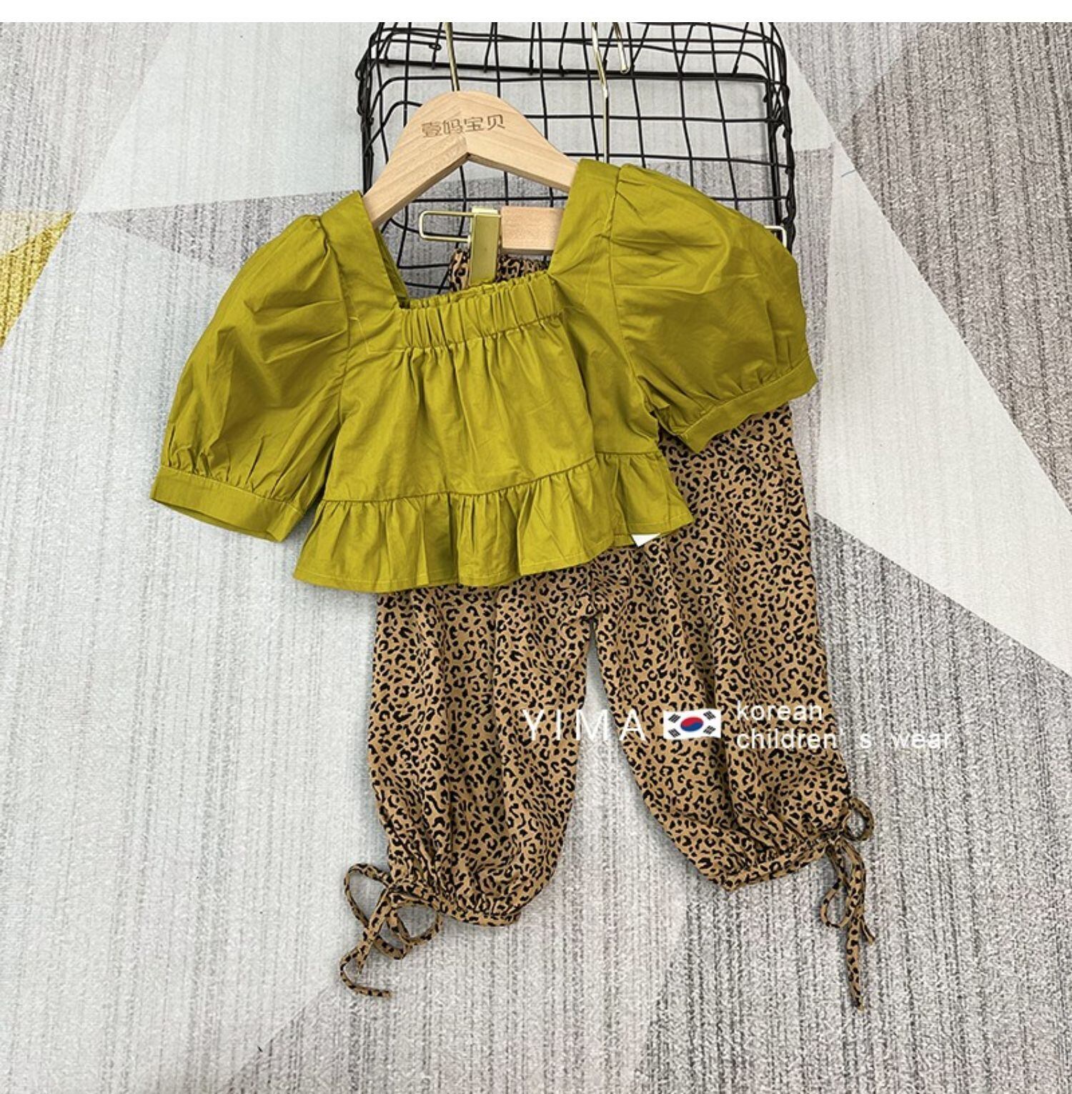 色:黄緑色のトップ,ヒョウパンツ