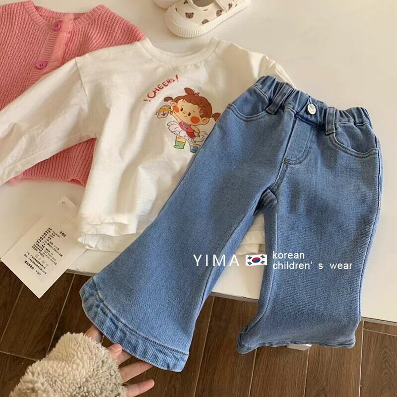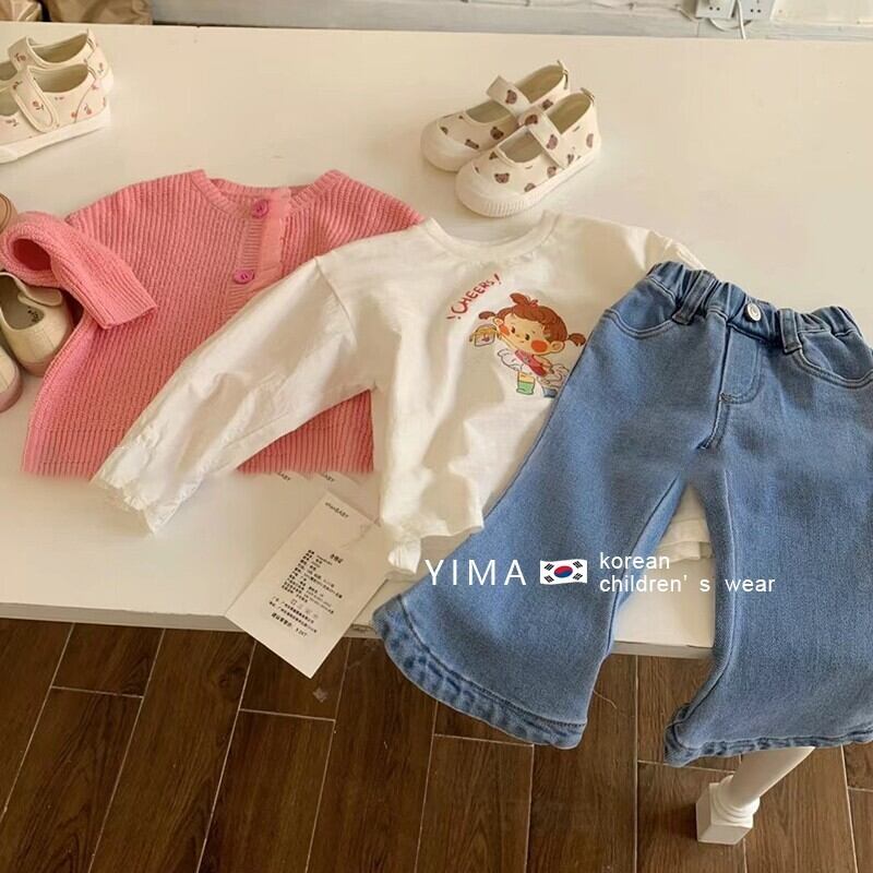 色:ピンクのカーディガン,白いTシャツ,ブルージーンズ