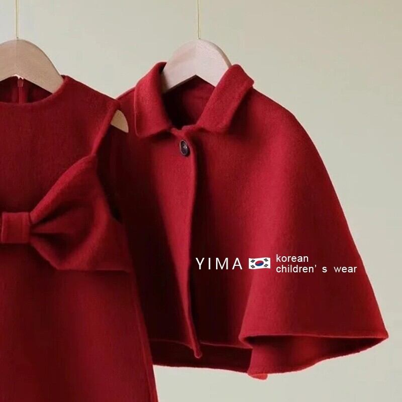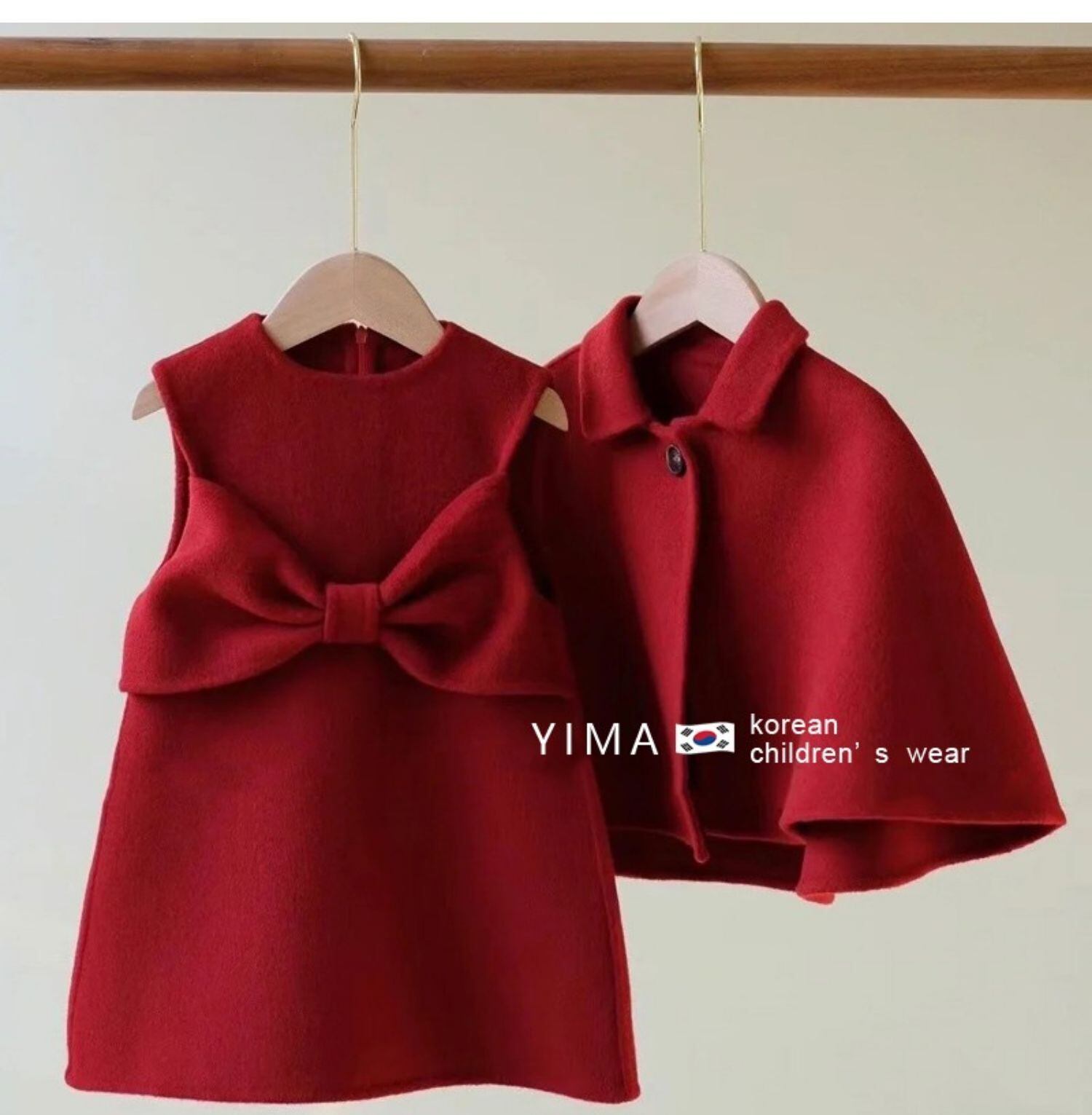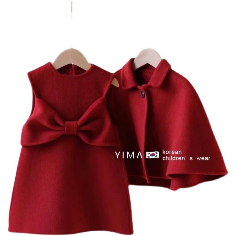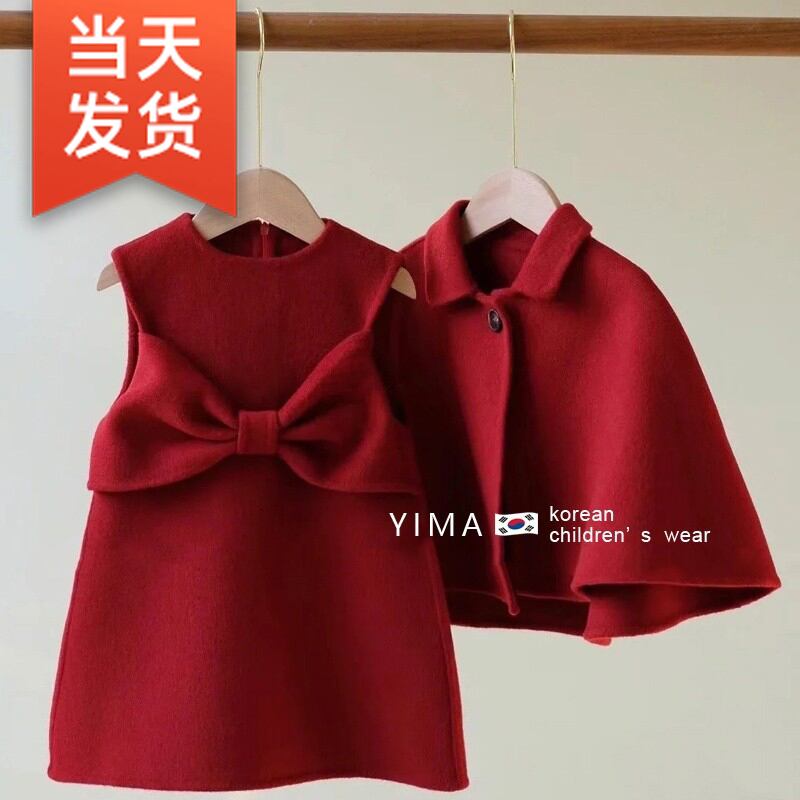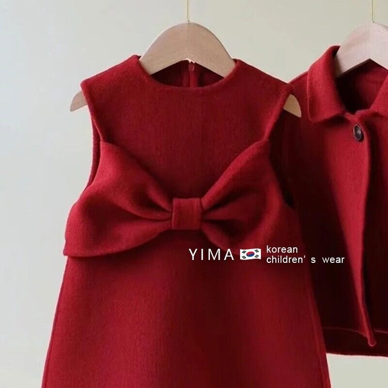 色:赤いベストスカート,赤いジャケット,白い毛皮の襟のボトミングシャツ,黒底シャツ