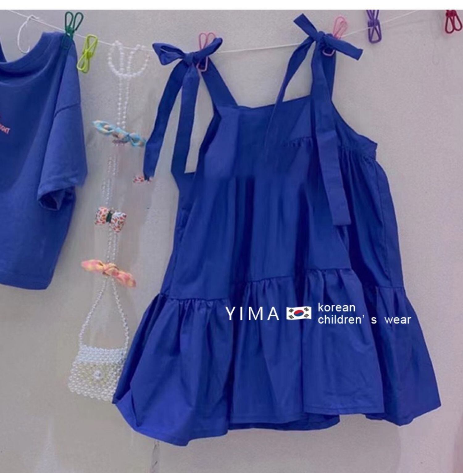 色:青い服,フローラルキャミソール