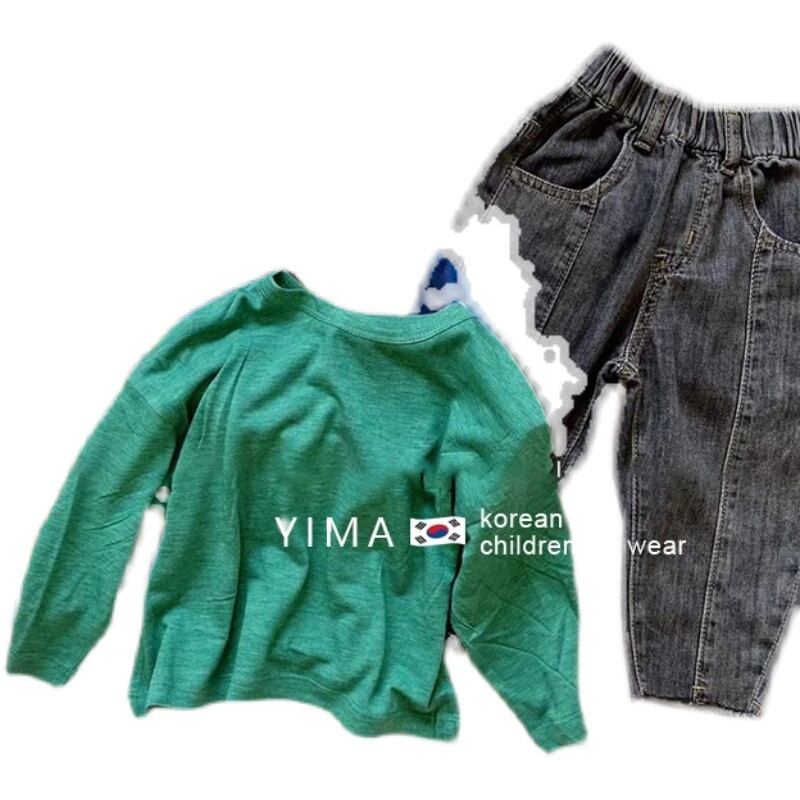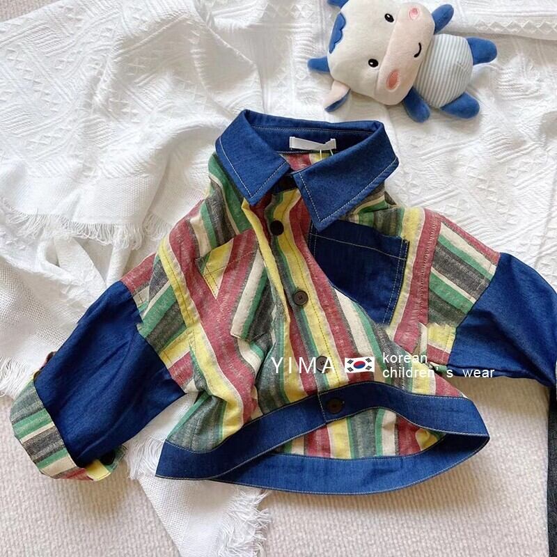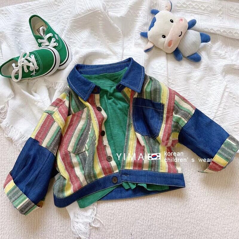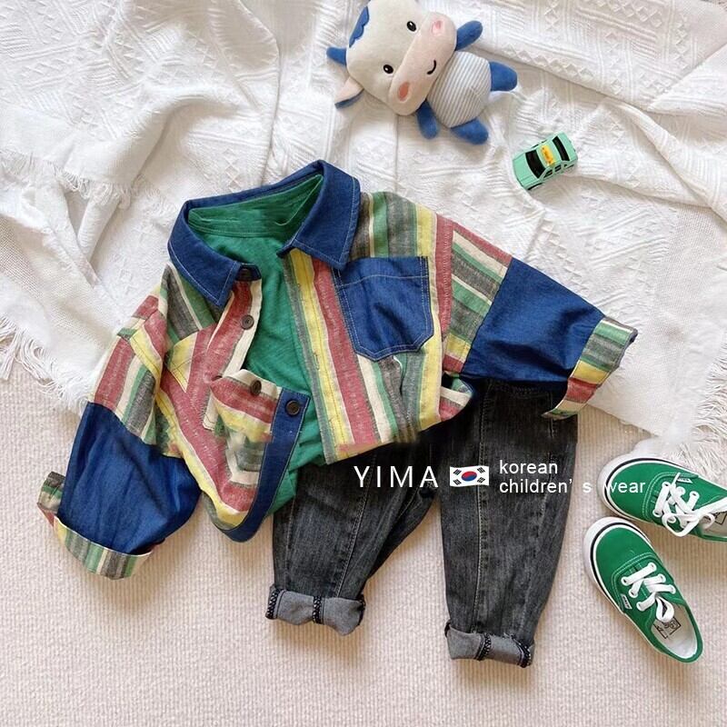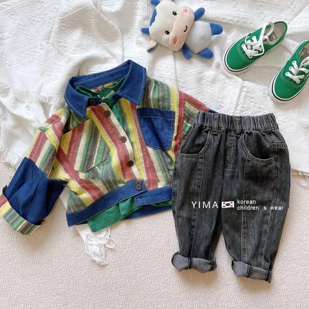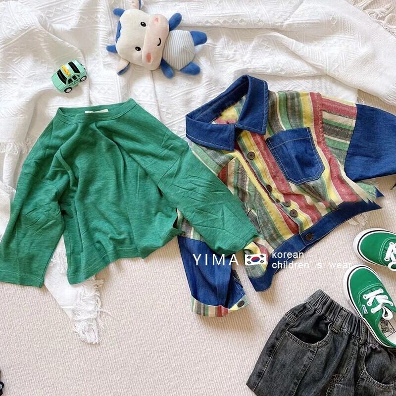 色:ストライプシャツ,緑の長袖,ブラックグレージーンズ
