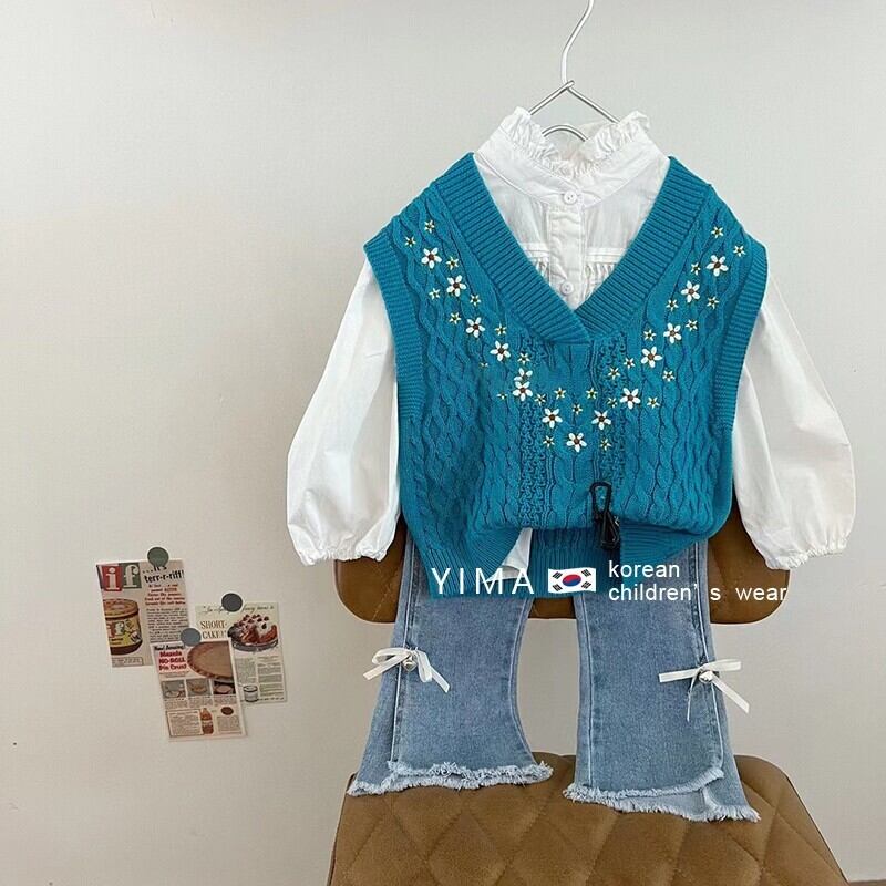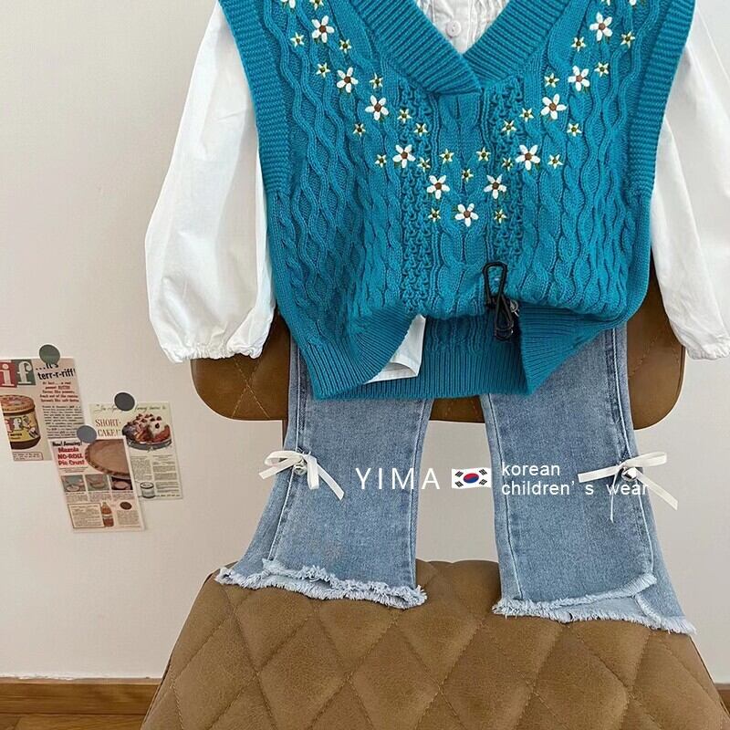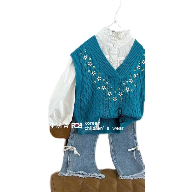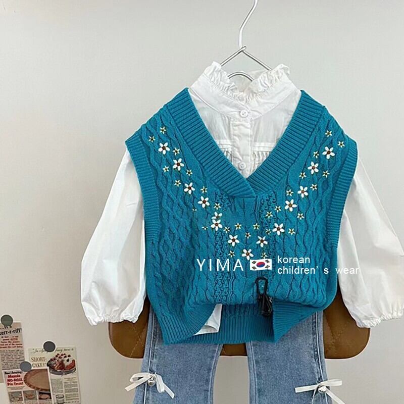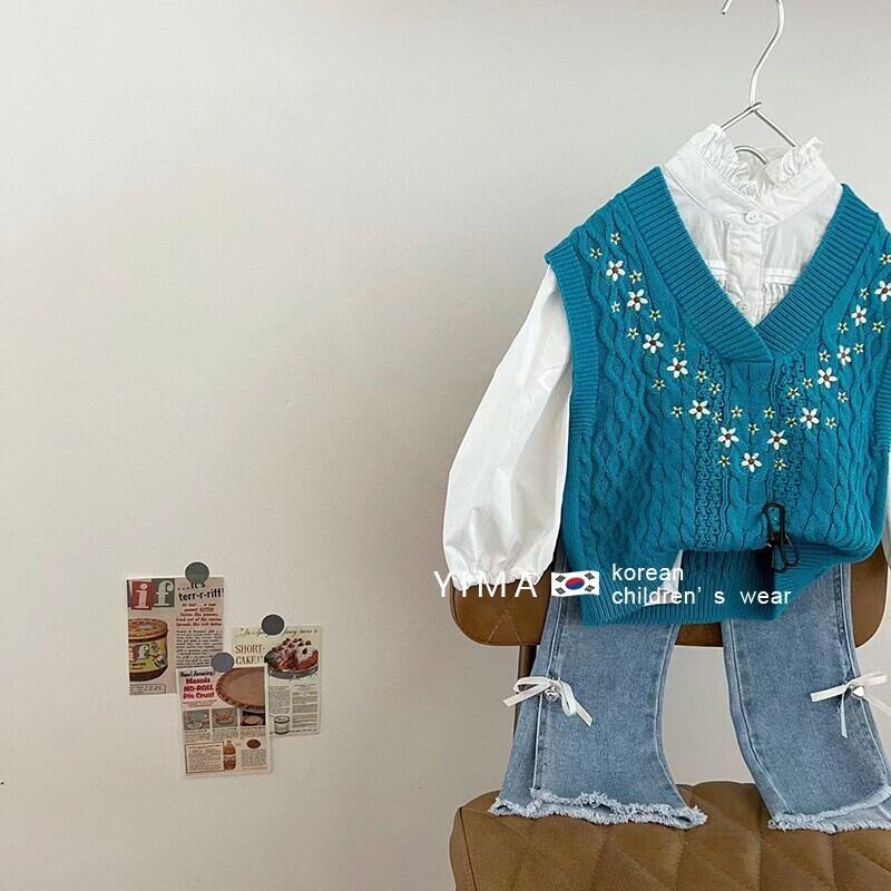スプリングスタイル刺繍Vネックニットセーター 春物 フラワーデザイン 3/14 春夏 SS mi0974713332966 | Sagittarius By Constellation -KIDS&BABY-